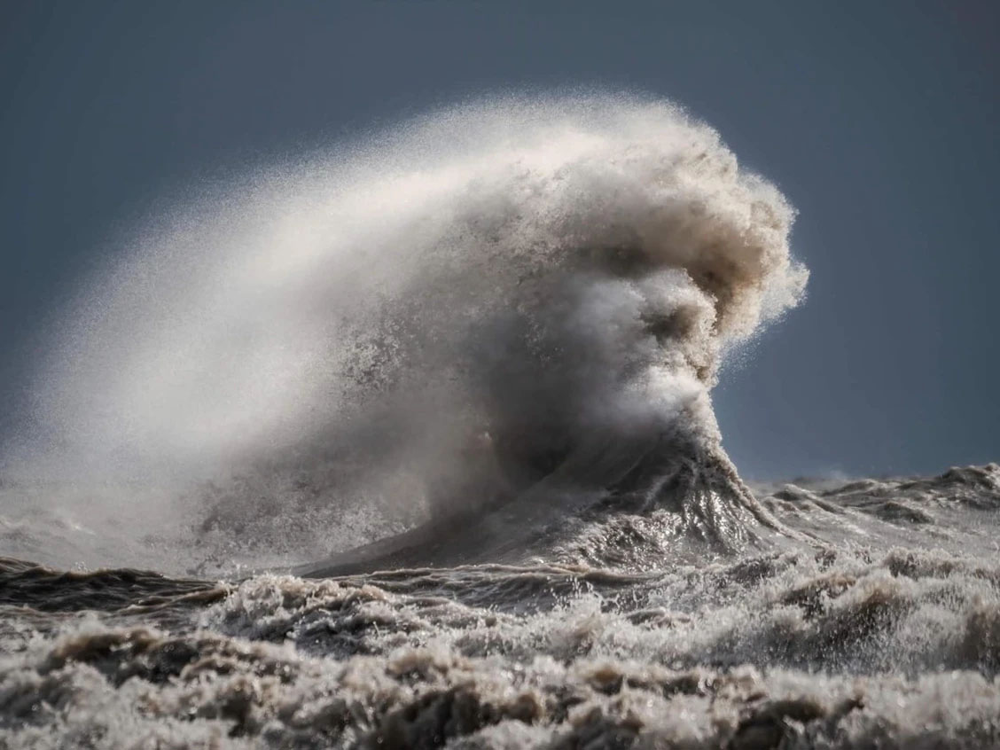 Vijeliile sunt deosebit de frecvente între sezonul de toamnă și cel de iarnă, datorită faptului că lacurile sunt încă relativ calde în comparație cu masa de aer rece. „În acest caz, vânturile de sud-vest au parcurs o distanță mare deasupra lacului și au format acele valuri deasupra apei„, explică meteorologul Daniel Liota, de la Environment Canada. Lui Evans îi place să fotografieze o gamă diversă de subiecte, feed-ul său de Instagram fiind plin de fotografii din motorsport, aeriene și naturale.
