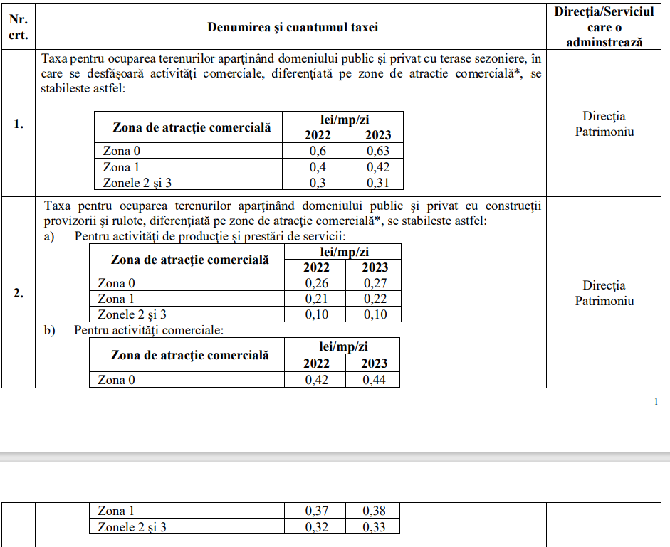 Printre altele, modificări va suferi și taxa pentru ocuparea terenurilor aparţinând domeniului public şi privat cu terase sezoniere, în care se desfăşoară activităţi comerciale, diferenţiată pe zone de atractie comercială.