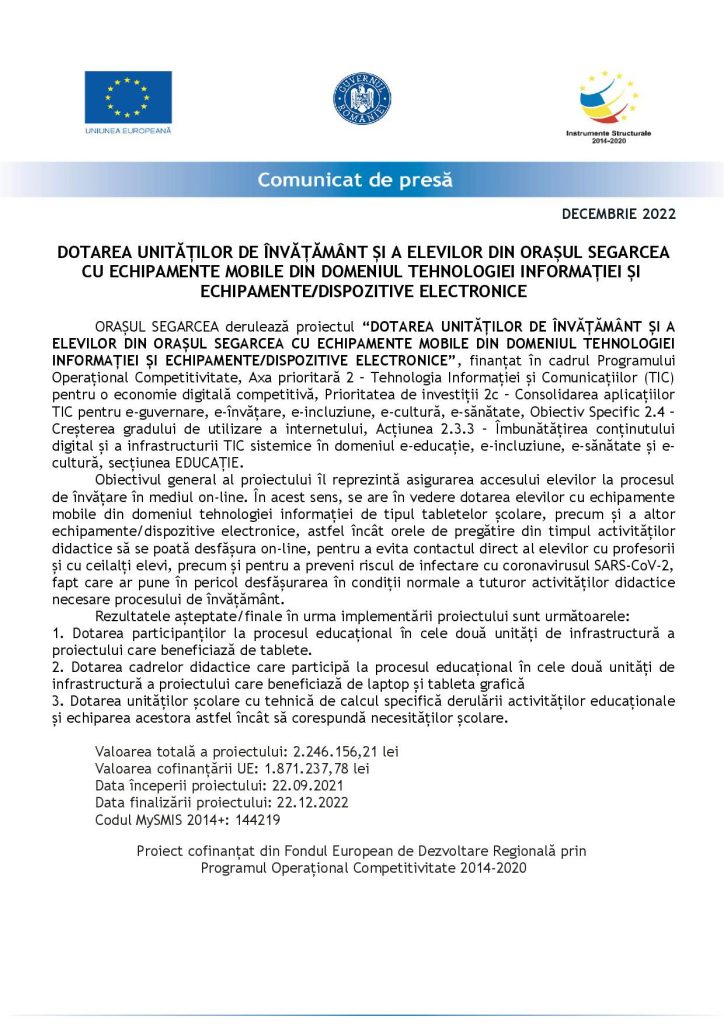 DoljEconomieDOTAREA UNITĂȚILOR DE ÎNVĂȚĂMÂNT ȘI A ELEVILOR DIN ORAȘUL SEGARCEACU ECHIPAMENTE MOBILE DIN DOMENIUL TEHNOLOGIEI INFORMAȚIEI ȘIECHIPAMENTE/DISPOZITIVE ELECTRONICE Jurnalul Olteniei 21 decembrie 2022 Share SHARE Jurnalul Olteniei See Full Bio Distribuie acest articol Facebook Whatsapp Whatsapp Email Copy Link Print Articolul precedent Olt. Aproape două tone de articole pirotehnice, descoperite la două persoane Articolul următor Dolj. S-a semnat contractul pentru elaborarea DALI necesară accesării fondurilor pentru reabilitarea Palatului Administrativ Ultima ora Se știe grupa în care poate juca România la Cupa Mondială din 2026 5 decembrie 2025 Dolj: Ajutoare sociale de peste 76 milioane lei 5 decembrie 2025 Cea de-a VII-a ediție a Semimaratonului Craiovei a avut loc sâmbătă, 18 octombrie 2025. 5 decembrie 2025 ANUNT PRIVIND ORGANIZAREA ACHIZITIEI DE UTILAJE . MINIEXCAVATOR – LOTUL 1, UTILAJ DE FORAT HIDRAULIC – LOTUL 2 – RELUATÃ 2 5 decembrie 2025 Modernizarea CF Filiași: Începe proiectarea 5 decembrie 2025 Testare gratuită HPV la Spitalul Județean Târgu Jiu 5 decembrie 2025 CE Oltenia raportează emisii scăzute de dioxid de carbon 5 decembrie 2025 DIICOT a destructurat un grup de proxenetism în Mehedinți 5 decembrie 2025 Legea pensiilor magistraților, atacată, din nou, la CCR 5 decembrie 2025 Magia Crăciunului Târgu Jiu: Seară de neuitat 5 decembrie 2025