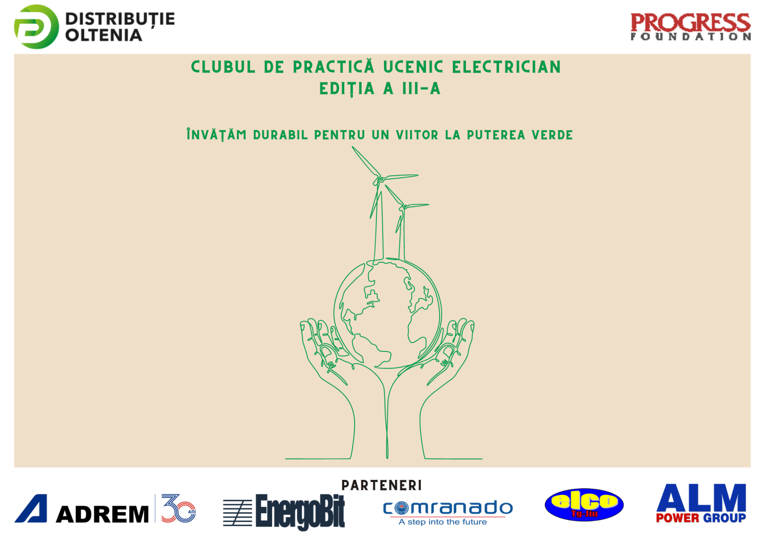 Proiectul Ucenic Electrician, marca Distribuție Oltenia, reia în 2023 o activitate pentru elevii care au nevoie să-și dezvolte abilitățile tehnice, dar și să evolueze pe plan personal: Clubul de Practică, ediția a III-a. „Învățăm durabil pentru un viitor la puterea verde” alături de Fundația Progress și le oferim celor aproape 300 de Ucenici din cele 7 licee partenere provocări lunare din domeniu, premii atractive și multe surprize.