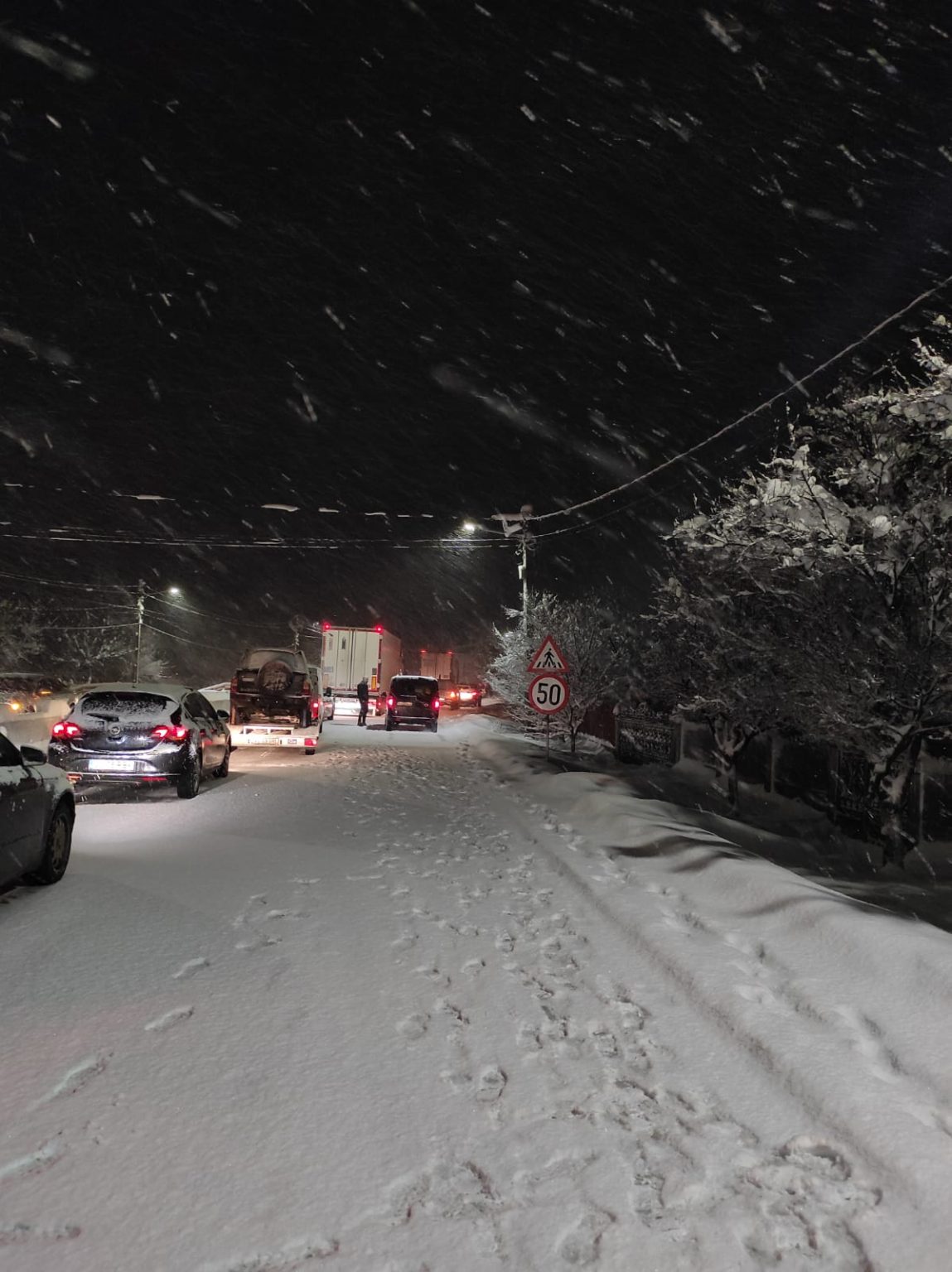 S-a produs un blocaj în trafic, utilajele de deszăpezire nu au mai putut acționa, fiind prinse în ambuteiaj.