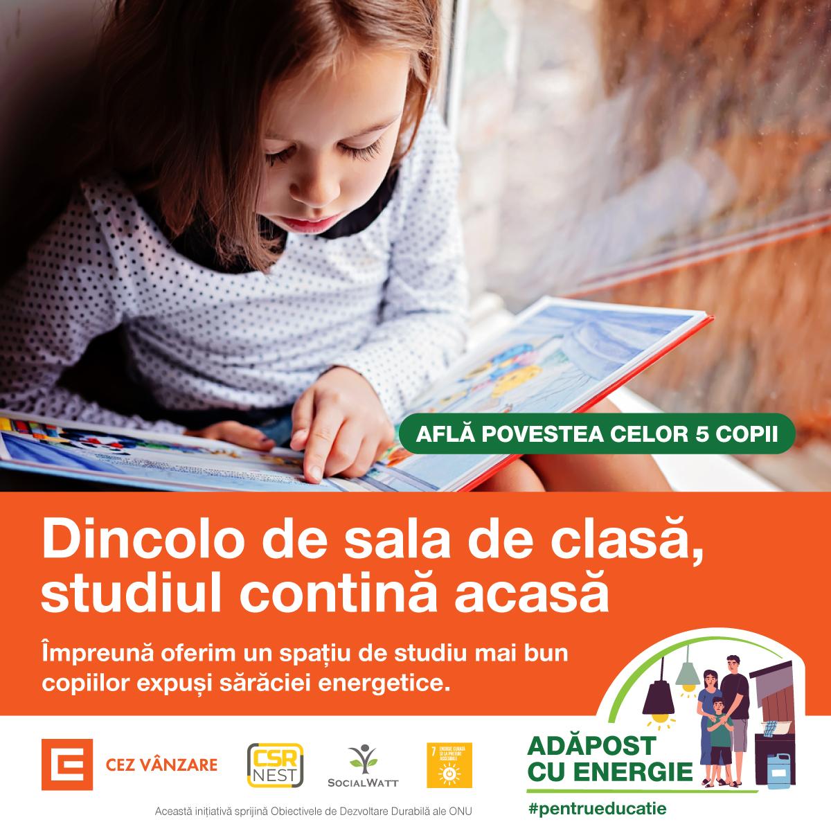 „Pentru ca procesul educațional prin care generațiile de copii trec să fie complet, eficient și să aibă rezultatele scontate în viitor, acesta trebuie să continue și acasă, prin aprofundarea cunoștințelor abordate la școală. Copiii trebuie să beneficieze acasă de un confort fizic și emoțional constant, iar acesta se reflectă nemijlocit în performanțele la învățătură. Ne bucurăm că am făcut parte din inițiativa CEZ Vânzare Adăpost cu energie #PentruEducație și că am reușit să contribuim la crearea unor condiții mai bune de locuire și învățare pentru copiii cu rezultate excelente proveniți din medii vulnerabile” – Anda Sebesi, Director de Comunicare, Asociația CSR Nest.