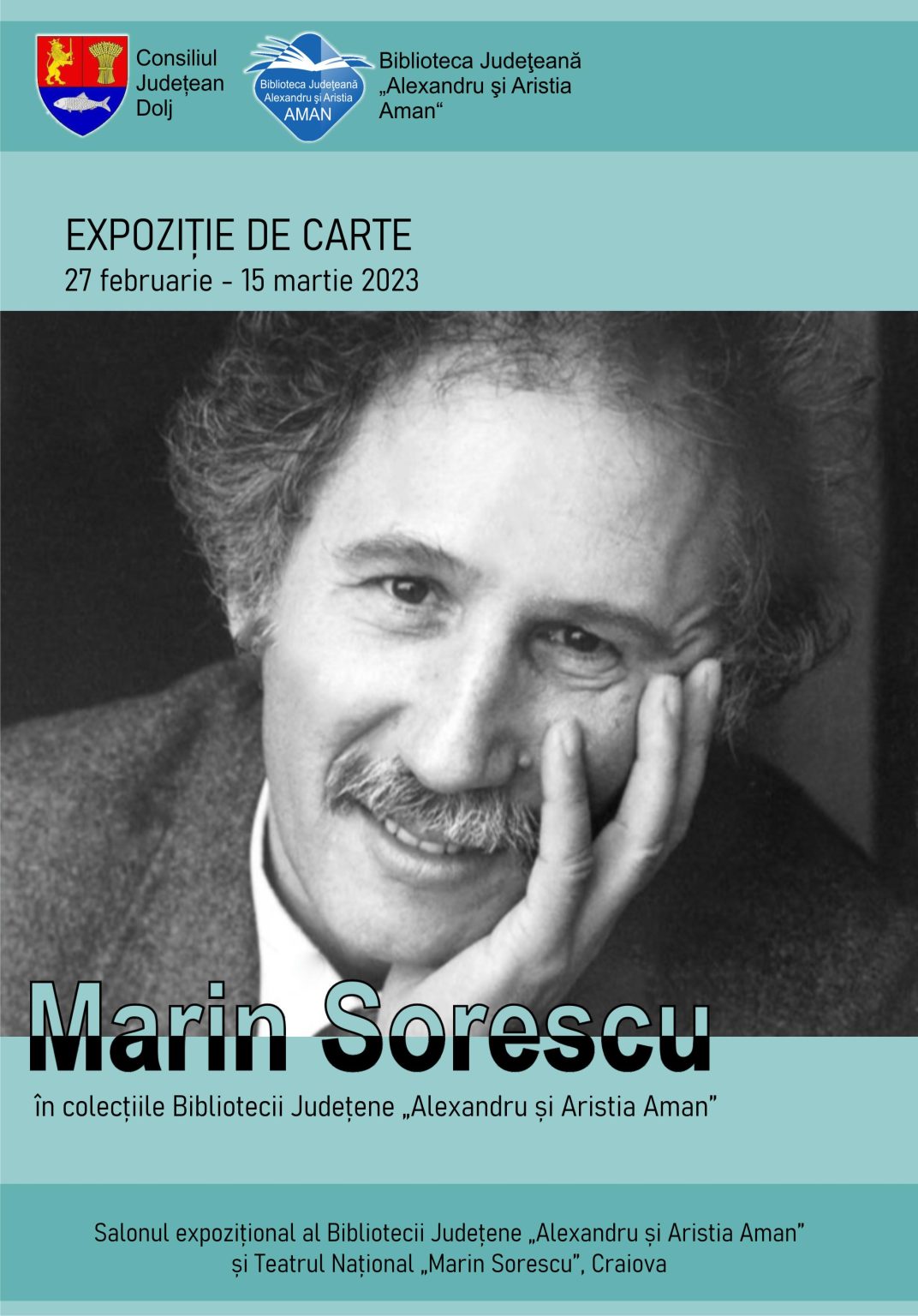 Biblioteca Judeţeană „Alexandru şi Aristia Aman” organizează începând de luni, 27 februarie 2023, ora 10.00, expoziţia de carte denumită Marin Sorescu în colecţiile Bibliotecii Judeţene „Alexandru şi Aristia Aman”