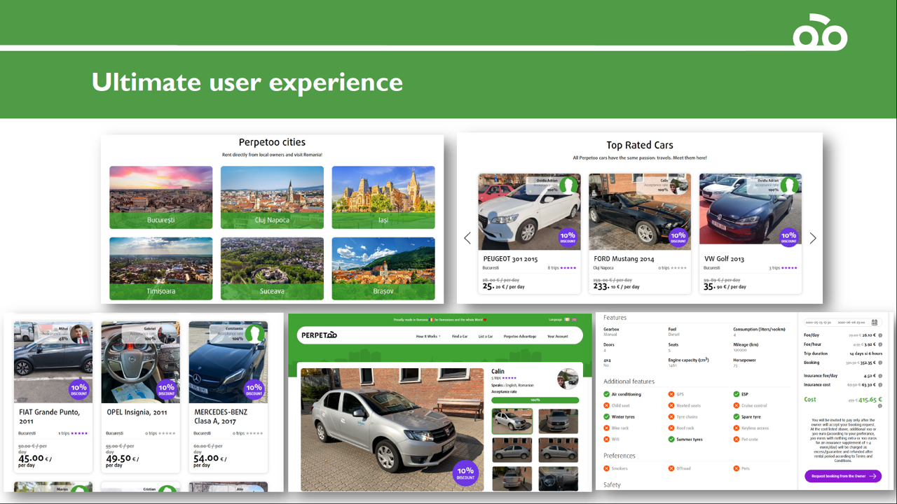 Pot câștiga între 1.000 și 5.000 de lei, media lunară de venituri înregistrată până acum, care le pot acoperi costurile legate de întreținere, de exemplu. Mașinile listate trebuie să respecte criteriile platformei, iar proprietarii lor să fie dedicați clienților”, declară Aurelian Marin, fondatorul Perpetoo.