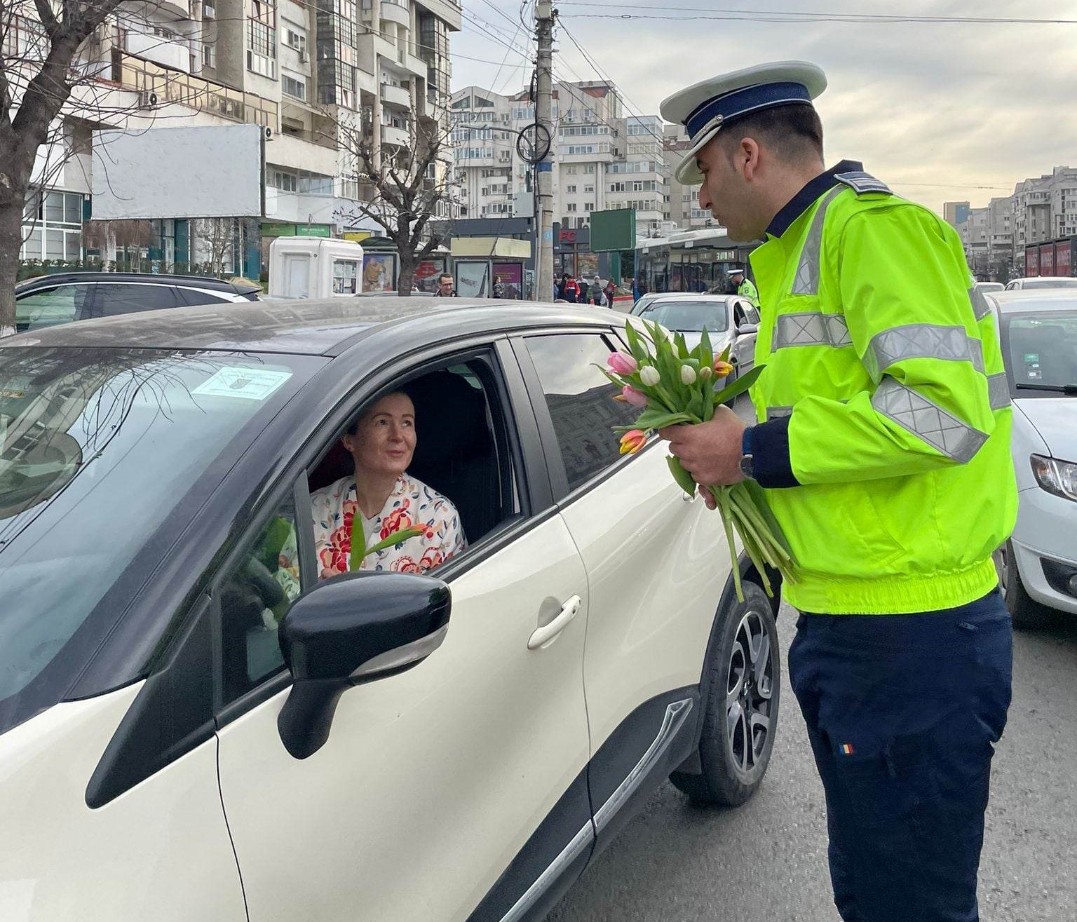 Ca în fiecare an, de Ziua Internațională a Femeii, polițiștii doljeni au oferit flori, însoțite de urări și gânduri bune, participantelor la trafic.