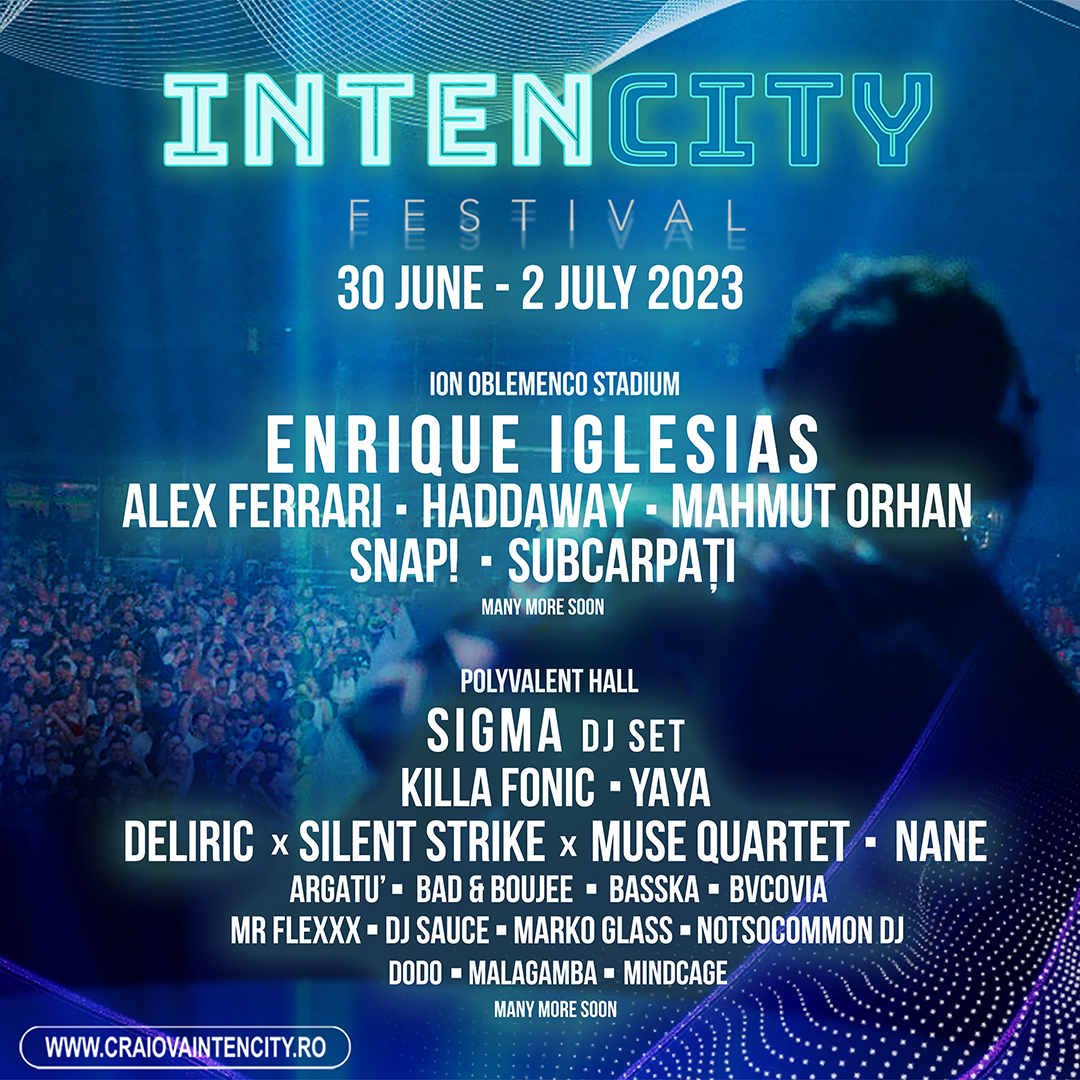Festivalul IntenCity, aflat la cea de-a doua ediție, va avea loc în perioada 30 iunie – 2 iulie, în Craiova, pe două scene amenajate în cadrul Complexului Sportiv Craiova (Stadionul Ion Oblemenco) și Sala Polivalentă.
