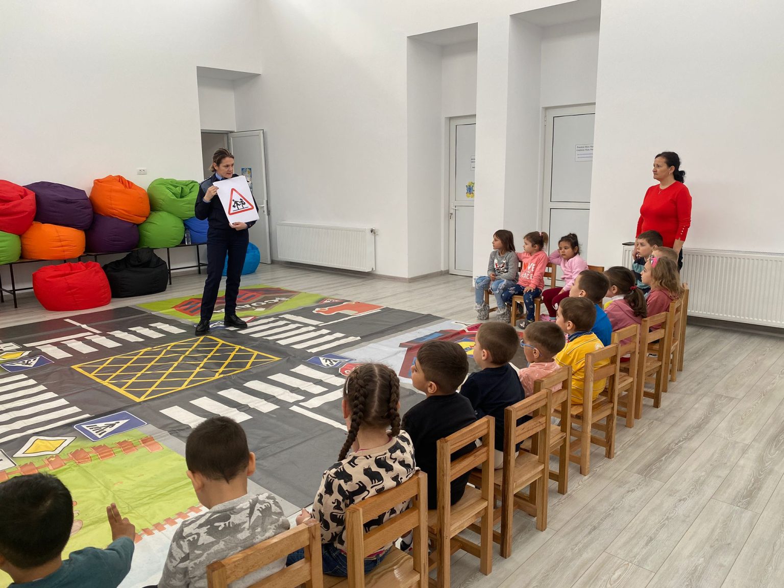 „Într-o modalitate interactivă, au fost prezentate indicatoarele de circulație cele mai întâlnite, respectiv semaforul pentru pietoni, semaforul pentru mașini, marcajul cu „trecerea de pietoni”, „pistă pentru bicicliști”, „STOP”, explicându-le celor mici semnificația și importanța fiecărui indicator în parte.