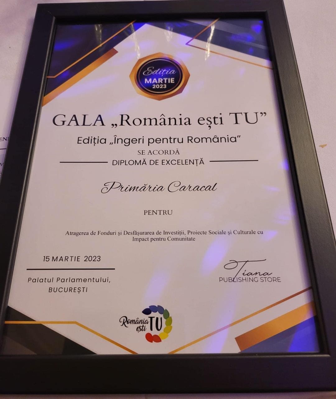 Primăria Caracal, premiată la Gala ”România ești TU”