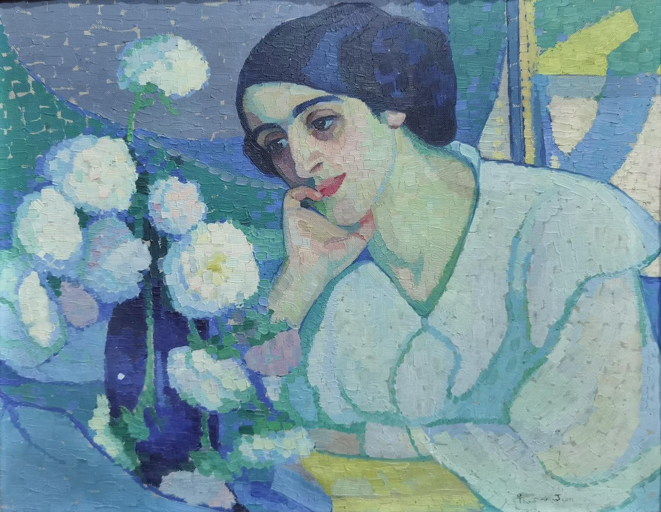 „Dintre acestea se remarcă lucrarea „Portret de femeie”, care o înfățișează, de fapt, pe prima soție a lui Sion. Este un portret din tinerețe. De obicei, pe ea o recunoaștem ușor datorită trăsăturilor sale aparte, părului negru, sprâncenelor foarte pronunțate și acestei coafuri reprezentative pentru anii ‘20. Lucrarea este una de o modernitate desăvârșită. Cunoscut pentru abilitatea sa extraordinară de a schimba radical limbajul plastic de la o lucrare la alta, acest portret se înscrie în seria experimentelor artistice pe care le realizează artistul. Tușele sunt pătrate și aproape separate unele de celelalte, oferind picturii un aer avangardist, îndrăzneț. Felul acesta de experiment este unic în arta românească. Afecțiunea cu care Sion a reprezentat-o pe soția sa se citește în modul în care sunt redate privirea ei caldă și eleganța gestului mâinii drepte”, declară Maria Munteanu, ghid Art Safari.