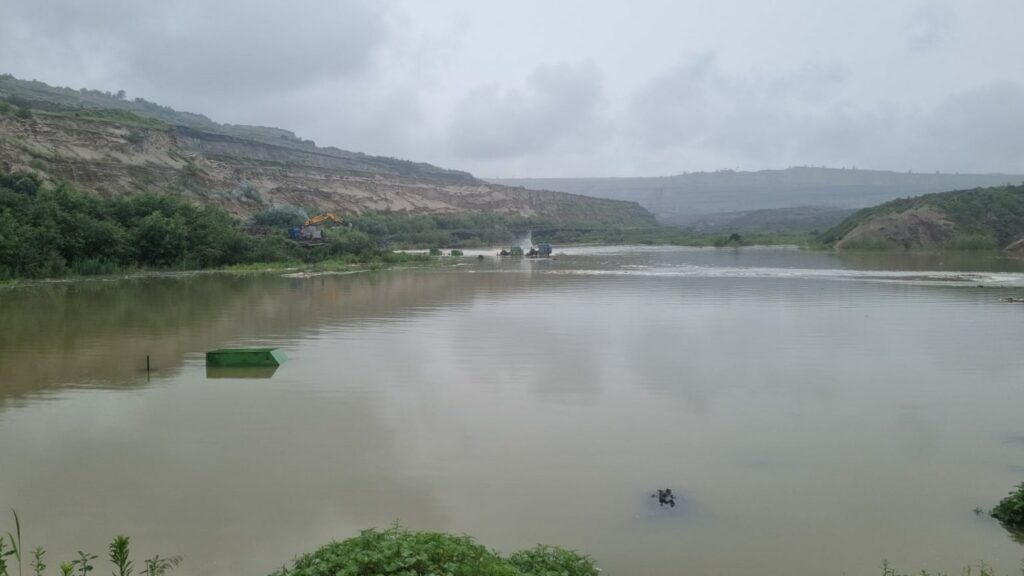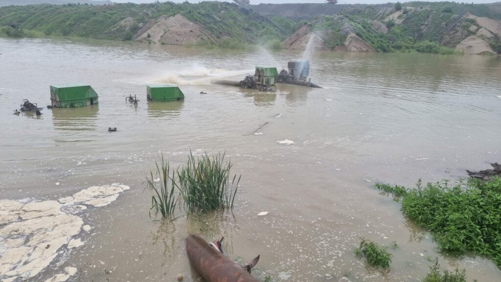 Cariera Roșia, inundată. Minerii merg cu barca