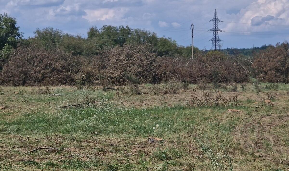 Copacii au fost tăiați și pădurea de nuci s-a transformat într-un câmp plin cu crengi uscate. Potrivit legii, un nuc poate fi tăiat doar dacă este bătrân și 60% din coroană este uscată.