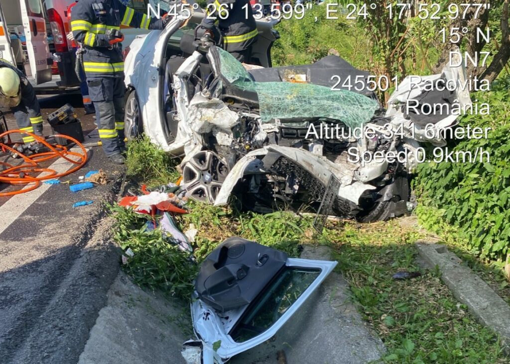 UPDATE. Victima încarcerată a fost extrasă de pompierii militari vâlceni dintre fiarele contorsionate dar, din nefericire, a fost declarat decesul acesteia de către un medic ATI, aflat în zona evenimentului.