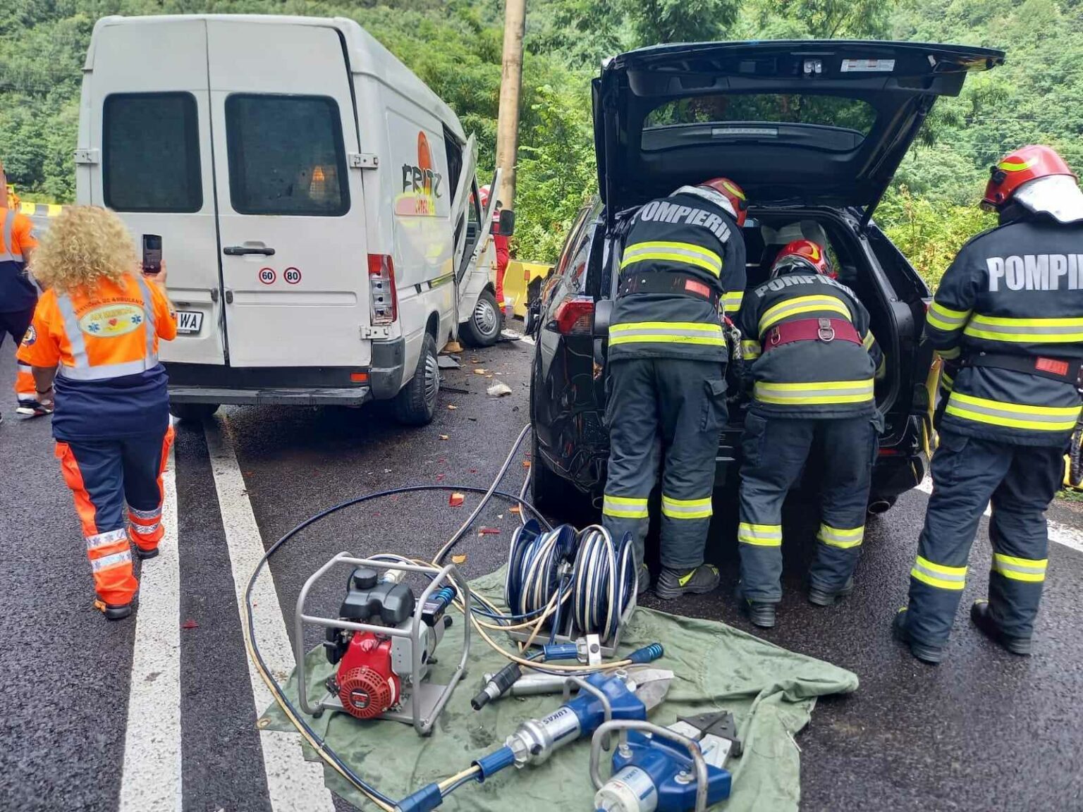 ”Polițiștii rutieri intervin la un eveniment rutier soldat cu rănirea a 2 persoane. Din primele verificări efectuate se pare că ar fi vorba despre o coliziune între o autoutilitară și un autoturism pe DN7 în localitatea Brezoi. În urma impactului la rezultat rănirea conducătorului autoutilitarei, cât și a pasagerului dreapta față al acesteia”, potrivit IPJ Vâlcea.