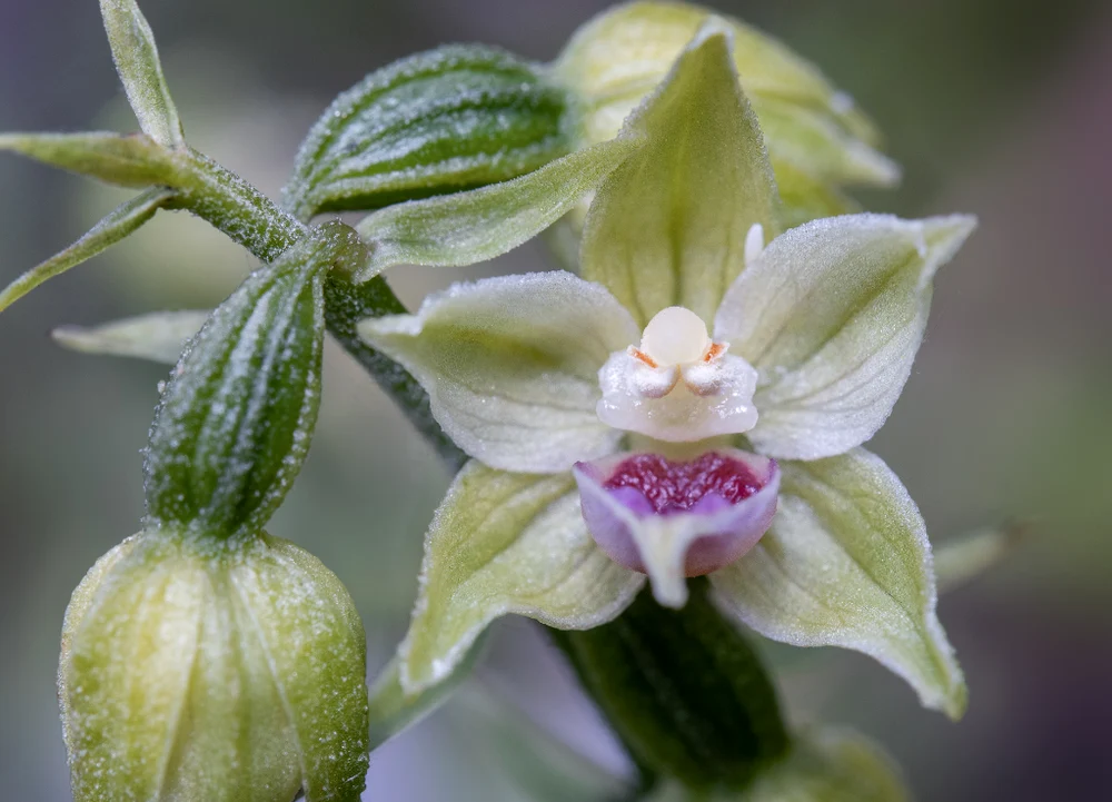 ,,La prima vedere, în lumina aspră a zilelor fierbinți de vară, plantele arătau mai degrabă ca un grup deosebit de Epipactis helleborine deshidratate, verzi-gălbui, ofilite, perfect camuflate în vegetația maronie, ierboasă, din jur. Cele mai izbitoare trăsături au fost inflorescențele alungite, purtând mai multe flori discrete, alb-crem, complet închise, atârnate ca un pandantiv, ovare de culoare verde-gălbui, un indiciu clar al unei specii cleistogame, autogame, total diferite de cele cu polenizare încrucișată, chasmogame, de exemplu Epipactis helleborine”, a precizat Nora Anghelescu pentru Societatea Ornitologică din România.
