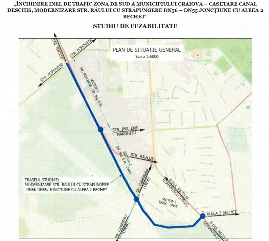 Studiul de fezabilitate pentru un nou proiect de amploare din Bănie poate intra în linie dreaptă, începând de joi. Este vorba despre obiectivul de investiții „Închidere inel de trafic zona de sud a municipiului Craiova – casetare canal deschis, modernizare str. Râului cu străpungere DN56 – DN55 joncţiune cu Aleea 2 Bechet”. Consilierii locali vor avea proiectul pe masă și vor vota dacă acesta va fi pus în aplicare sau nu. Valoarea totală a investiției se ridică la suma de 137.173.638,71 lei, din care costurile legate de construcții și montaj (C+M), ar fi de 119.719.829,88 lei. Durata de realizare a investiţiei este estimată la 12 luni.