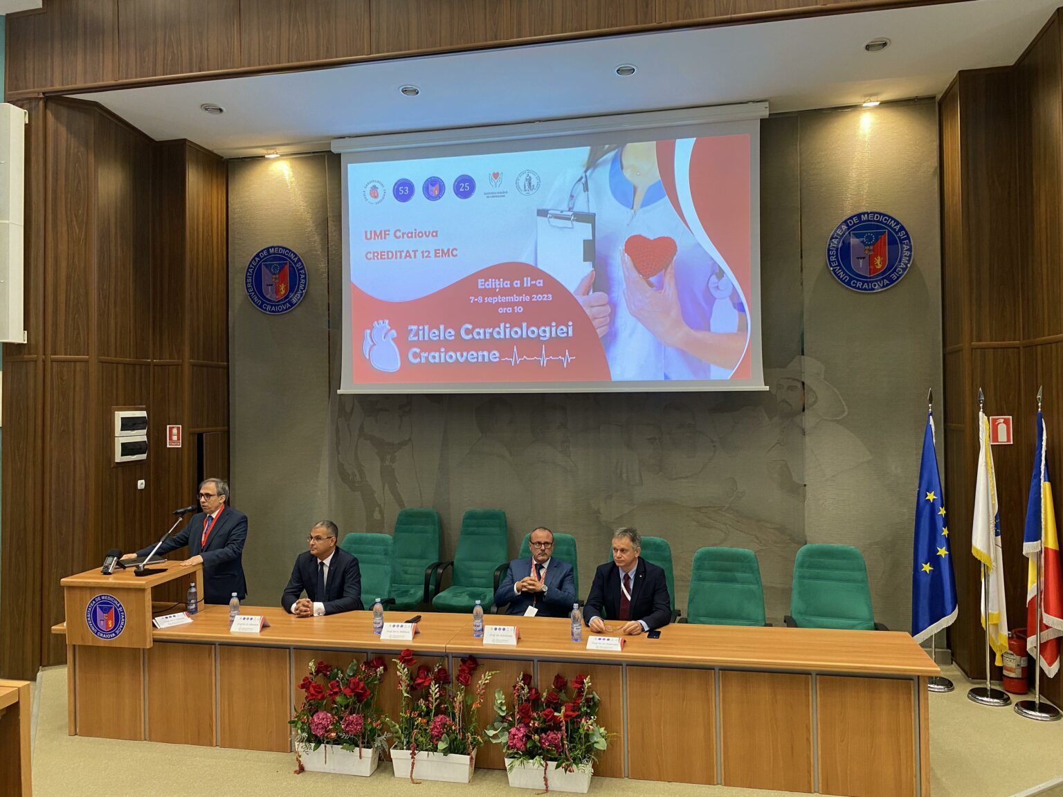 „Mă bucur că această manifestare în zona cardiologiei este la a II-a ediție și sunt sigur că va continua în aceeași admosferă. Colegii mei din clinica de cardiologie deja au demonstrat că au un cuvânt de spus în cardiologia românească, în cardiologia Olteniei, în primul rând în interesul pacienților. Putem rezolva pacienții din zona Olteniei în ceea ce înseamnă cardiologie intervențională, ușor începe și clinica de cardiologie cardiacă să se dezvolte și să facă intervenții din ce în ce mai complexe. Viziunea Universității este echipă și ne bucurăm când vedem echipe conglomerate”, a spus rectorul UMF Craiova, Dan Gheonea.
