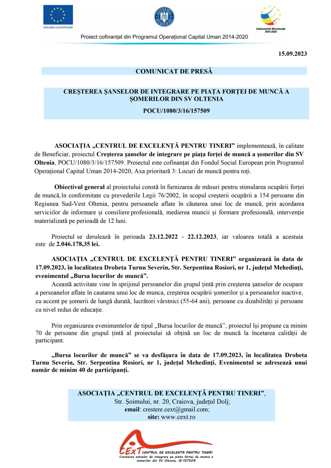 AnunturiCreșterea șanselor de integrare pe piața forței de muncă a șomerilor din SV Oltenia – POCU/1080/3/16/157509 Jurnalul Olteniei 3 noiembrie 2023 Share SHARE Jurnalul Olteniei See Full Bio Distribuie acest articol Facebook Whatsapp Whatsapp Email Copy Link Print Articolul precedent Minor dispărut de la domiciliu Articolul următor Juniorii României au câștigat două medalii de aur și una de argint la Campionatul European de Șah Ultima ora Zilele Colindului în România: Tradiția care unește țara 6 decembrie 2025 Se știe grupa în care poate juca România la Cupa Mondială din 2026 5 decembrie 2025 Dolj: Ajutoare sociale de peste 76 milioane lei 5 decembrie 2025 Cea de-a VII-a ediție a Semimaratonului Craiovei a avut loc sâmbătă, 18 octombrie 2025. 5 decembrie 2025 ANUNT PRIVIND ORGANIZAREA ACHIZITIEI DE UTILAJE . MINIEXCAVATOR – LOTUL 1, UTILAJ DE FORAT HIDRAULIC – LOTUL 2 – RELUATÃ 2 5 decembrie 2025 Modernizarea CF Filiași: Începe proiectarea 5 decembrie 2025 Testare gratuită HPV la Spitalul Județean Târgu Jiu 5 decembrie 2025 CE Oltenia raportează emisii scăzute de dioxid de carbon 5 decembrie 2025 DIICOT a destructurat un grup de proxenetism în Mehedinți 5 decembrie 2025 Legea pensiilor magistraților, atacată, din nou, la CCR 5 decembrie 2025