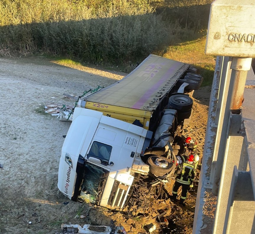 “Accident rutier în comuna Milcoiu-Tepsenari (zona podului de peste râul Topolog), tir căzut de pe pod. Alocate la caz forțe din cadrul Detasamentului de Pompieri Râmnicu Valcea, cu o autospecială de stingere cu modul de descarcerare, o autospecială de descarcerare, o autospecială de intervenție rapidă și o ambulanta SAJ. Conducatorul autotrenului s-a autoevacuat până la sosirea echipajelor de intervenție, prezintă traumatism cranio-cerebral și este evaluat de către echipajul SAJ. Tirul transporta gresie. Pompierii militari asigura măsuri de prevenire și stingere a incendiilor”, se arată și în comunicarea rapidă a ISU Vâlcea.