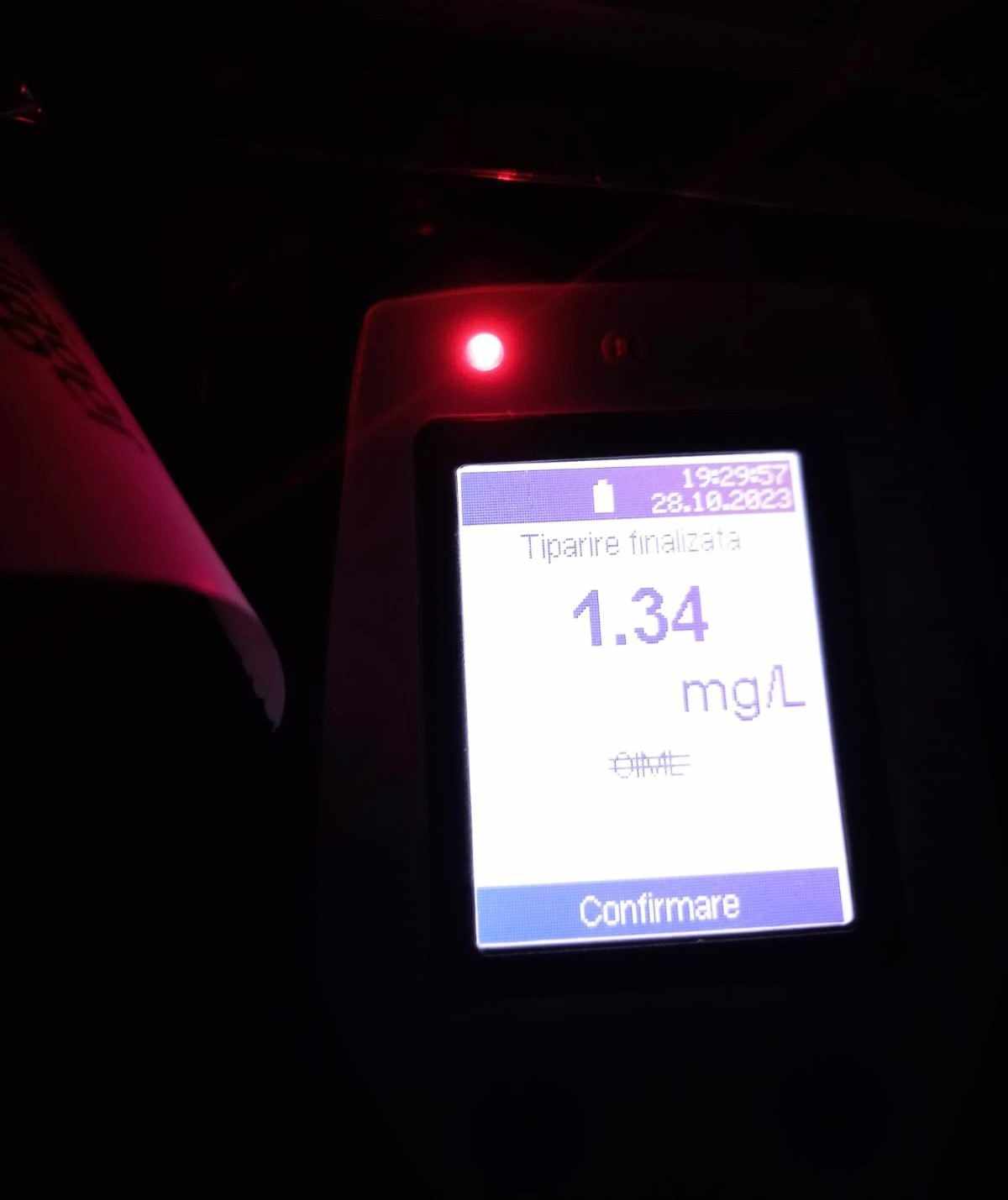 ”Ieri, 28 octombrie a.c., ora 19.28, poliţişti din cadrul Biroului Rutier Craiova au depistat un bărbat, din municipiul Craiova, în timp ce conducea un autoturism pe Aleea 2 Muntenilor din localitate. Întrucât emana halenă alcoolică, acesta a fost testat cu aparatul etilotest, rezultatul fiind de 1,34 mg/l alcool pur în aerul expirat. Bărbatul a fost condus la o unitate medicală în vederea prelevării de mostre biologice”, potrivit IPJ Dolj.