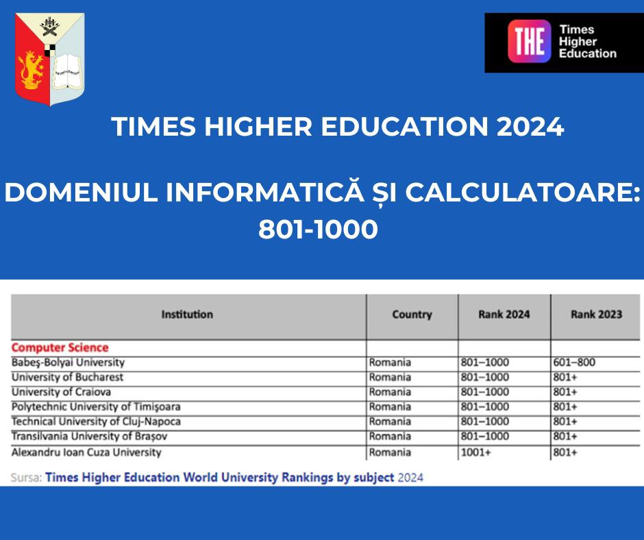 1. Domeniul Informatică și Calculatoare: 801-1000 (sunt doar 6 universități din România în acest interval);