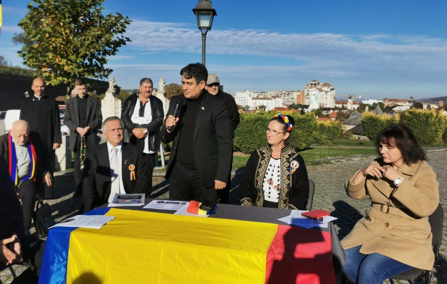 La o masă cu un tricolor pe post de mușama s-au așezat primarul USR din Alba Iulia, Gabriel Pleșa, fostul primar din Cluj, Gheorghe Funar și președintele AUR Deva, Tiberiu Bârstan. Lângă ei au ajuns și Daniela Petronela Anca și Letiția Aman, membri AUR Caraș-Severin, pentru a „judeca” „crimele” Imperiului Austro-Ungar, scrie alba24.ro.