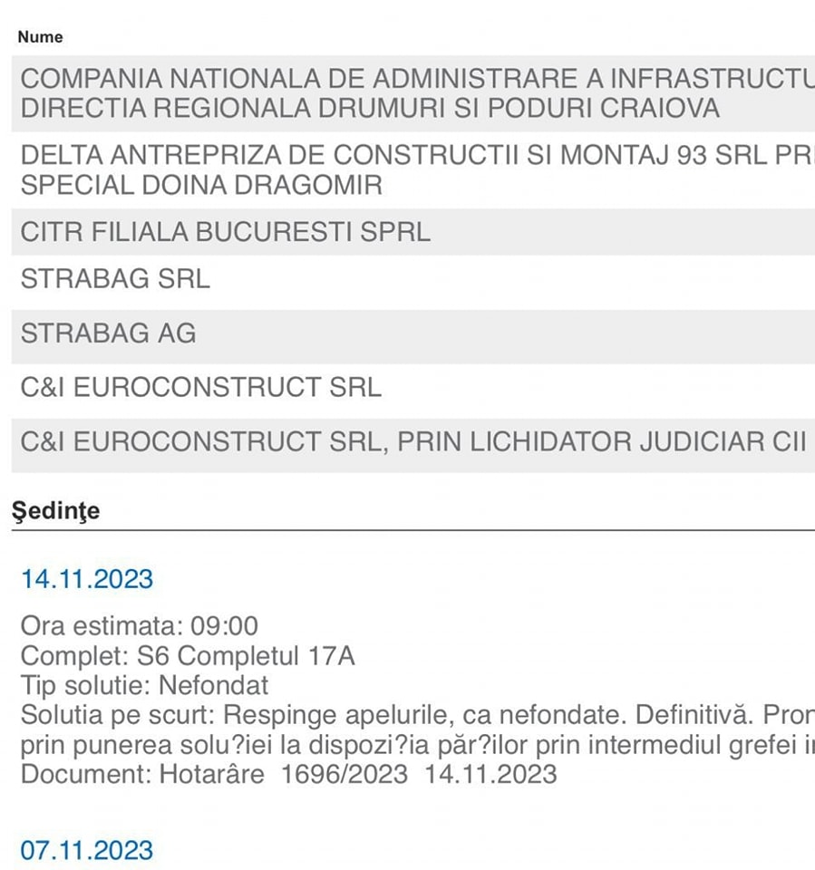 „După 13 ani de la câștigarea contractului, timp în care nu s-a întâmplat nimic pe acest drum, nici măcar proiectul tehnic de execuție nu a fost întocmit, și după mai multe încercări de reziliere, astăzi DRDP Craiova a câștigat definitiv procesul ce permite rezilierea acestui contract. A fost un proces dificil, cu multe termene, dar juriștii noștri au reușit performanța de a învinge avocații constructorilor, avocați specializați în astfel de litigii. Avem pregătită documentația să lansăm în licitație actualizarea documentației tehnice, în baza expertizei realizate de CNAIR, urmând să lansăm în licitație proiectare+execuție. Pentru a preveni o nouă blocare a acestui proiect, vom propune ca cei 188 de km să fie împărțiți în mai multe loturi”, a declarat Cosmin Călin, directorul DRDP Craiova.