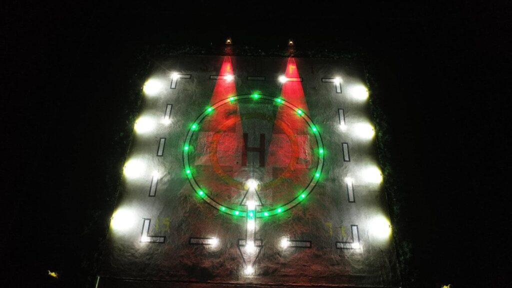 Pe platformă au fost amplasate 2 containere metalice: unul pentru spațiile administrative/birouri și unul pentru pichetul PSI ce vor deservi heliportul.