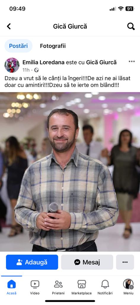 Gică Giurcă avea 41 de ani și era din Târgu Jiu. El era cântăreț de muzică populară. Bărbatul se certa cu familia, iar din această cauză, era în depresie. Înainte de gestul extrem, bărbatul de 41 de ani a postat un mesaj pe o rețea de socializare cum că își cere iertare tuturor celor cărora le-a greșit.