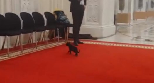 O pisică neagră și-a făcut apariția la ușa Comisiei de buget-finanţe, unde se dezbat bugetele instituțiilor pentru anul viitor. Pisica și-a văzut nestingherită de treabă sub ochii aleșilor, până când o angajată a parlamentului a venit să o ia.