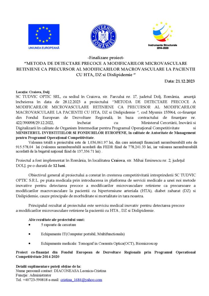 AnunturiMETODA DE DETECTARE PRECOCE A MODIFICARILOR MICROVASCULARE RETINIENE Jurnalul Olteniei 21 decembrie 2023 Share SHARE Jurnalul Olteniei See Full Bio Distribuie acest articol Facebook Whatsapp Whatsapp Email Copy Link Print Articolul precedent Înjunghiat de patru ori în abdomen Articolul următor SCM Craiova cere bani în plus, la final de an Ultima ora Se știe grupa în care poate juca România la Cupa Mondială din 2026 5 decembrie 2025 Dolj: Ajutoare sociale de peste 76 milioane lei 5 decembrie 2025 Cea de-a VII-a ediție a Semimaratonului Craiovei a avut loc sâmbătă, 18 octombrie 2025. 5 decembrie 2025 ANUNT PRIVIND ORGANIZAREA ACHIZITIEI DE UTILAJE . MINIEXCAVATOR – LOTUL 1, UTILAJ DE FORAT HIDRAULIC – LOTUL 2 – RELUATÃ 2 5 decembrie 2025 Modernizarea CF Filiași: Începe proiectarea 5 decembrie 2025 Testare gratuită HPV la Spitalul Județean Târgu Jiu 5 decembrie 2025 CE Oltenia raportează emisii scăzute de dioxid de carbon 5 decembrie 2025 DIICOT a destructurat un grup de proxenetism în Mehedinți 5 decembrie 2025 Legea pensiilor magistraților, atacată, din nou, la CCR 5 decembrie 2025 Magia Crăciunului Târgu Jiu: Seară de neuitat 5 decembrie 2025