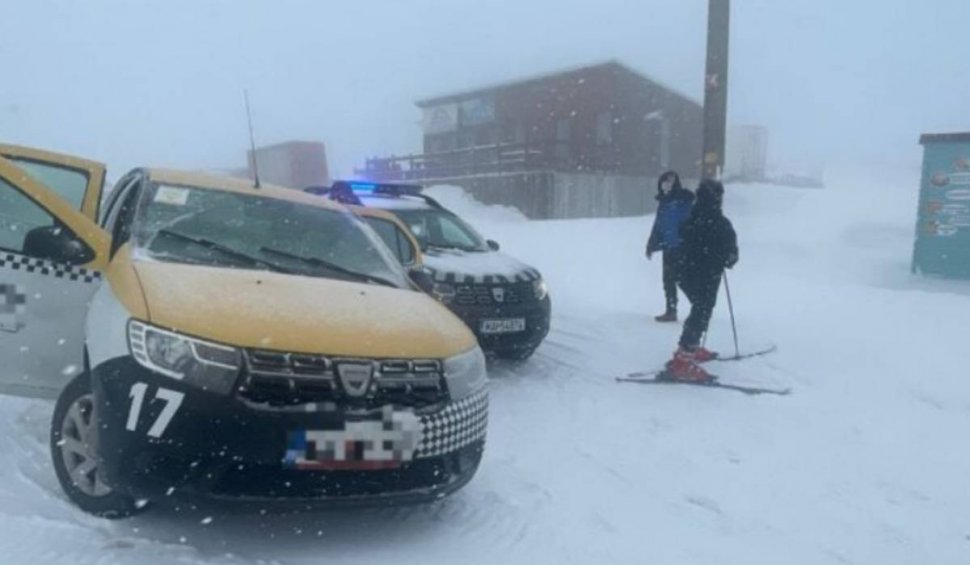 Jandarmii montani l-au sancționat contravențional cu 1000 de lei și i-au impus să scoată mașina din zona pârtiei de schi pentru evitarea oricărui eveniment nedorit.