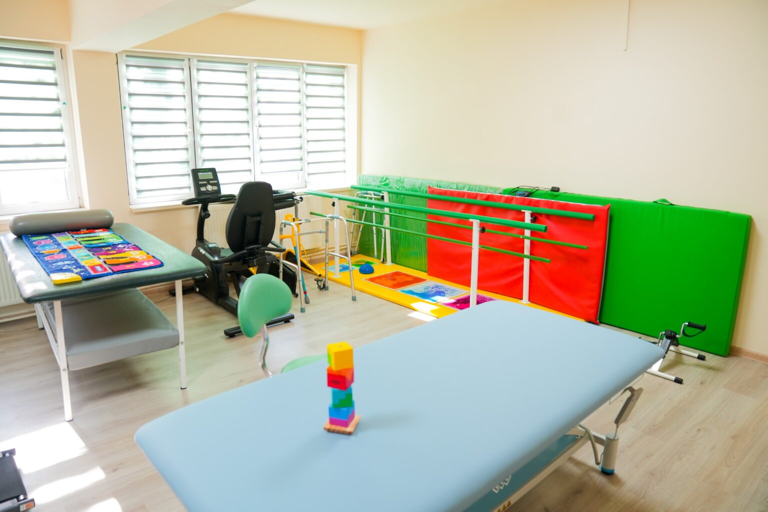 „Pentru buna desfășurare a procedurilor, au fost achiziționate toate echipamentele necesare atât pentru kinetoterapie, cât și pentru fizioterapie: bicicleta ergometrică, scară plan înclinat pentru recuperarea mersului, șpalieri și bare paralele, verticalizator, cușcă Rocher, masă Bobath, placă pentru echilibru, aparat magnetodiaflux, combină electroterapie, laser și ultrasunete de ultima generație, aparat parafină. Programele de recuperare sunt particularizate și urmăresc creșterea calității vieții și a gradului de independență a copiilor: tonifierea musculaturii, îmbunătățirea mobilității articulare, dezvoltarea neuromotorie și psihomotorie, dezvoltarea deprinderilor motrice, educarea ritmului și coordonării mișcărilor, corectarea posturii și aliniamentului corpului”, au transmis reprezentanții Spitalului de Neuropsihiatrie Craiova.