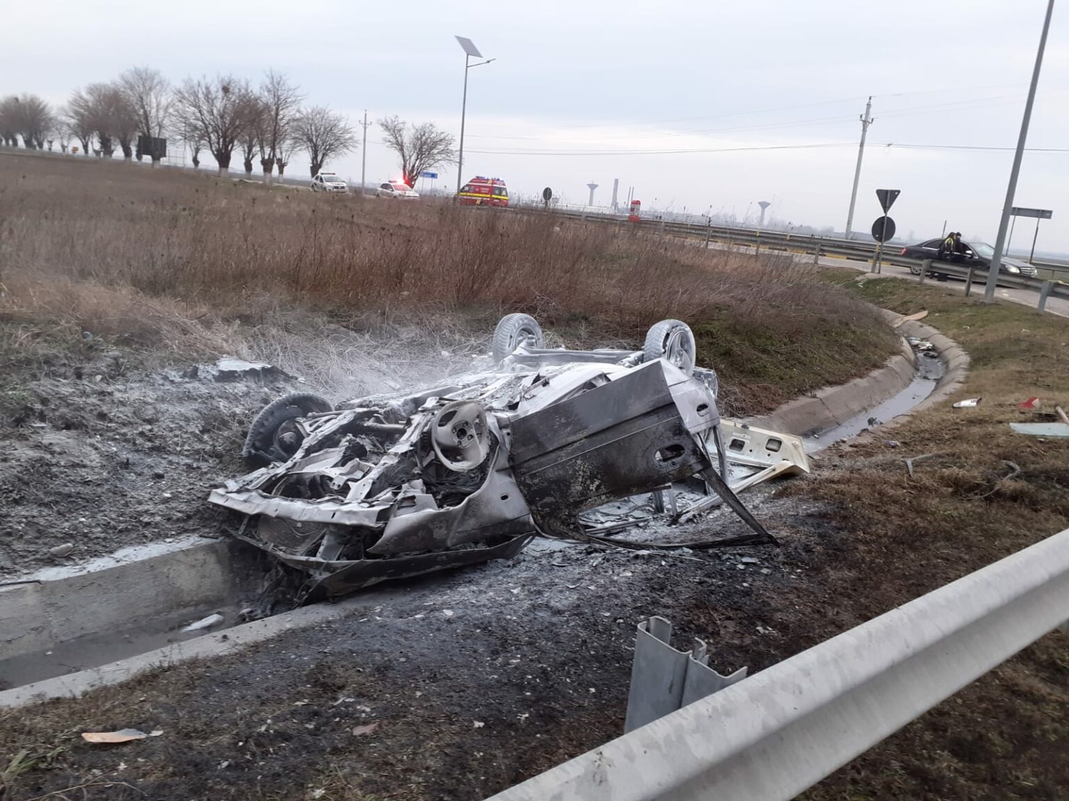 O mașină a luat foc în această dimineață, după ce s-a răsturnat pe centura Caracalului. Șoferul a fost găsit carbonizat.