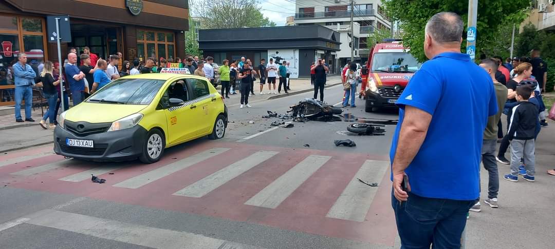Un tânăr din județul Dolj a ajuns la spital, după ce a intrat cu motocicleta într-un taxi care oprise la trecerea de pietoni. Accidentul s-a produs în Craiova, în zona Brazda lui Novac.