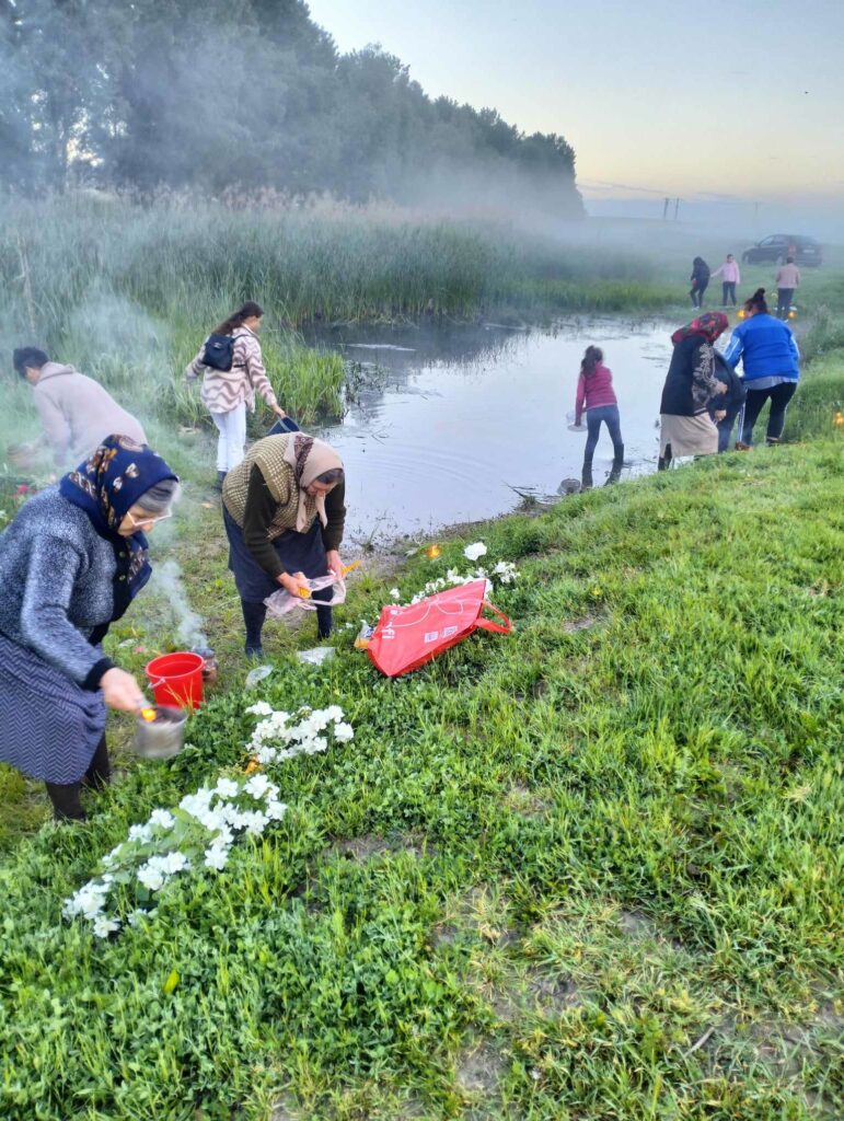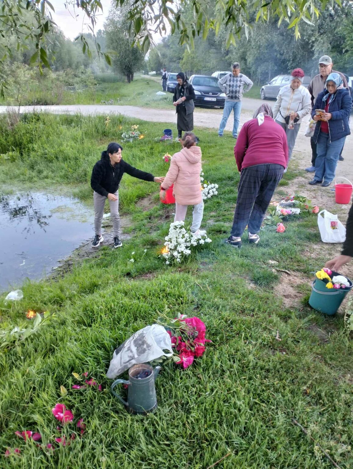 De la malul Jiețului, femeile se îndreaptă către cimitir, unde aprind lumânări, vărsă apă la morminte și împart mâncare de post pentru fiecare persoană decedată. În contrast cu ritualul specific, membrii comunității fac foc din boz uscat pentru a încălzi sufletele celor decedați și pentru a alunga spiritele rele.