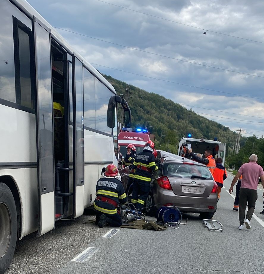 Grav accident în Vâlcea unde au fost implicate un autoturism și un autocar, precum și 8 ocupanți (2 în autoturism și 6 în autocar), iar în urma impactului cele două persoane din autoturism au rămas încarcerate. O femeie a suferit atac de panică, iar alta avea mai multe politraumatisme. Ambele au fost transportate la UPU.