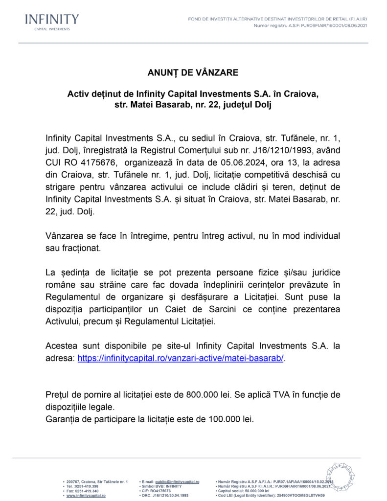 AnunturiDoljANUNȚ DE VÂNZARE – Activ deținut de Infinity Capital Investments S.A. în Craiova, str. Matei Basarab, nr. 22, județul Dolj Jurnalul Olteniei 28 mai 2024 Share SHARE Jurnalul Olteniei See Full Bio Distribuie acest articol Facebook Whatsapp Whatsapp Email Copy Link Print Articolul precedent Barză grav rănită la aripă, salvată de autorități Articolul următor Ochelarii de vedere: 4 aspecte de care să ții cont atunci când îi alegi Ultima ora Se știe grupa în care poate juca România la Cupa Mondială din 2026 5 decembrie 2025 Dolj: Ajutoare sociale de peste 76 milioane lei 5 decembrie 2025 Cea de-a VII-a ediție a Semimaratonului Craiovei a avut loc sâmbătă, 18 octombrie 2025. 5 decembrie 2025 ANUNT PRIVIND ORGANIZAREA ACHIZITIEI DE UTILAJE . MINIEXCAVATOR – LOTUL 1, UTILAJ DE FORAT HIDRAULIC – LOTUL 2 – RELUATÃ 2 5 decembrie 2025 Modernizarea CF Filiași: Începe proiectarea 5 decembrie 2025 Testare gratuită HPV la Spitalul Județean Târgu Jiu 5 decembrie 2025 CE Oltenia raportează emisii scăzute de dioxid de carbon 5 decembrie 2025 DIICOT a destructurat un grup de proxenetism în Mehedinți 5 decembrie 2025 Legea pensiilor magistraților, atacată, din nou, la CCR 5 decembrie 2025 Magia Crăciunului Târgu Jiu: Seară de neuitat 5 decembrie 2025