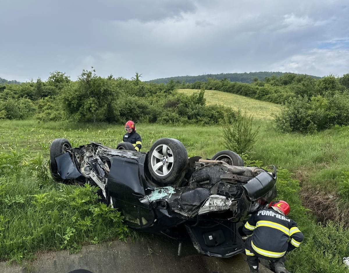 S-a răsturnat cu mașina. Două persoane au ajuns la spital