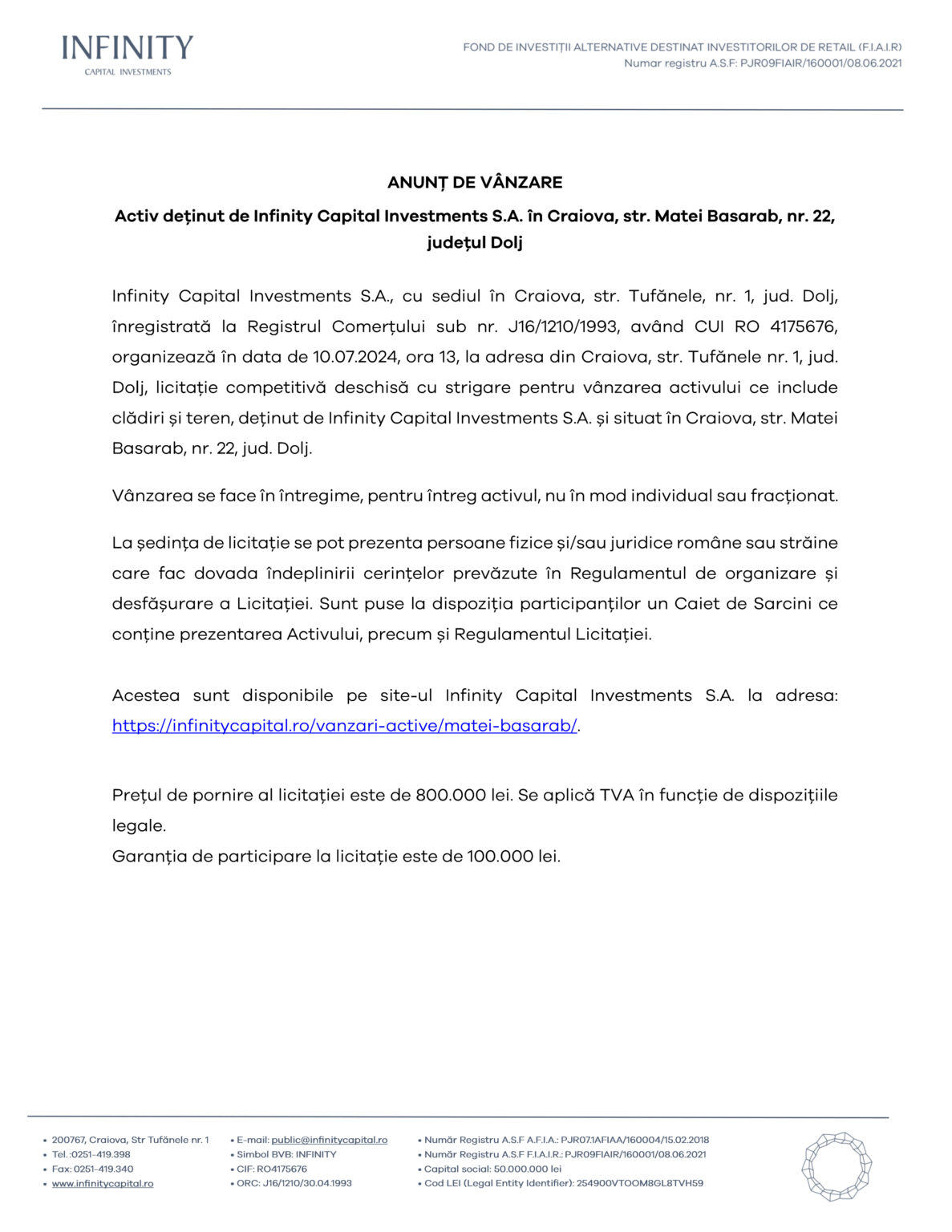 AnunturiDoljANUNȚ DE VÂNZARE – Activ deținut de Infinity Capital Investments S.A. în Craiova, str. Matei Basarab, nr. 22, județul Dolj Jurnalul Olteniei 3 iulie 2024 Share SHARE Jurnalul Olteniei See Full Bio Distribuie acest articol Facebook Whatsapp Whatsapp Email Copy Link Print Articolul precedent Unde și cum poziționăm chiuveta și oglinda în baie? Sfaturi de la specialiști Articolul următor Ministrul Transporturilor anunță că Valea Oltului se închide timp de o lună Ultima ora Se știe grupa în care poate juca România la Cupa Mondială din 2026 5 decembrie 2025 Dolj: Ajutoare sociale de peste 76 milioane lei 5 decembrie 2025 Cea de-a VII-a ediție a Semimaratonului Craiovei a avut loc sâmbătă, 18 octombrie 2025. 5 decembrie 2025 ANUNT PRIVIND ORGANIZAREA ACHIZITIEI DE UTILAJE . MINIEXCAVATOR – LOTUL 1, UTILAJ DE FORAT HIDRAULIC – LOTUL 2 – RELUATÃ 2 5 decembrie 2025 Modernizarea CF Filiași: Începe proiectarea 5 decembrie 2025 Testare gratuită HPV la Spitalul Județean Târgu Jiu 5 decembrie 2025 CE Oltenia raportează emisii scăzute de dioxid de carbon 5 decembrie 2025 DIICOT a destructurat un grup de proxenetism în Mehedinți 5 decembrie 2025 Legea pensiilor magistraților, atacată, din nou, la CCR 5 decembrie 2025 Magia Crăciunului Târgu Jiu: Seară de neuitat 5 decembrie 2025