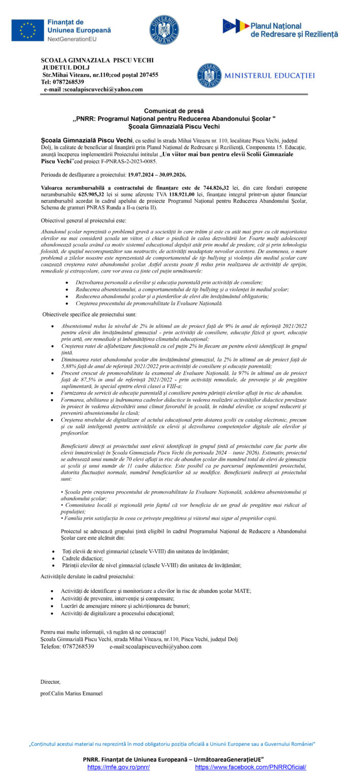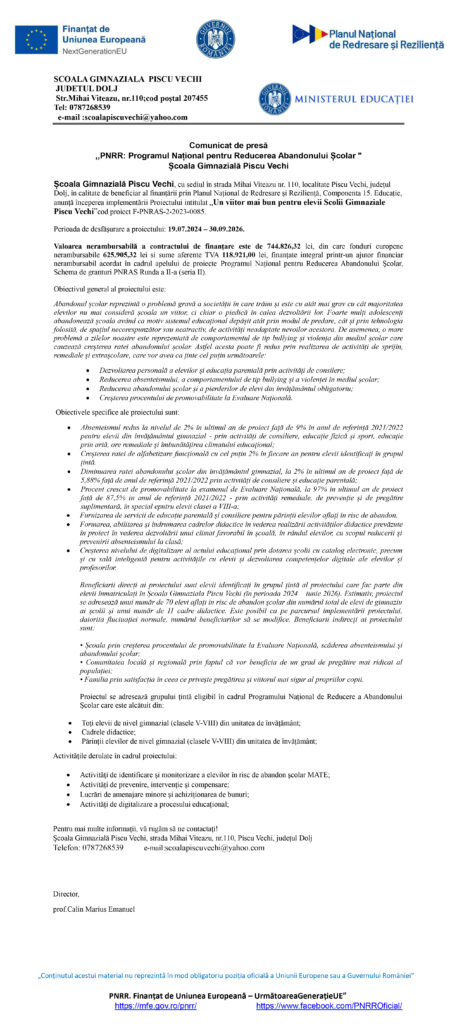 AnunturiComunicat de presă Școala Gimnazială Piscu Vechi Jurnalul Olteniei 29 iulie 2024 Share SHARE Jurnalul Olteniei See Full Bio Distribuie acest articol Facebook Whatsapp Whatsapp Email Copy Link Print Articolul precedent David Popovici: „E un vis împlinit. Am scris istorie” Articolul următor Scandal de proporții după CFR Cluj – CSU Craiova. Replici dure de la Rotaru și Dan Petrescu! Ultima ora Jurnalit.com: Gérard Piqué laudă România: „Noua Carolina de Nord” 6 decembrie 2025 Spargere de sezon: doi doljeni au fugit cu sania! 6 decembrie 2025 Restricțiile de pe DN7, Viaductul Cârligul Mic, ridicate 6 decembrie 2025 Incendiu puternic în Malu Mare: Pompierii intervin 6 decembrie 2025 Scandal în Gorj: Doi tineri reținuți după o bătaie 6 decembrie 2025 Sfântul Nicolae: 800.000 de români sărbătoriți pe 6 decembrie 6 decembrie 2025 Zilele Colindului în România: Tradiția care unește țara 6 decembrie 2025 Se știe grupa în care poate juca România la Cupa Mondială din 2026 5 decembrie 2025 Dolj: Ajutoare sociale de peste 76 milioane lei 5 decembrie 2025 Cea de-a VII-a ediție a Semimaratonului Craiovei a avut loc sâmbătă, 18 octombrie 2025. 5 decembrie 2025