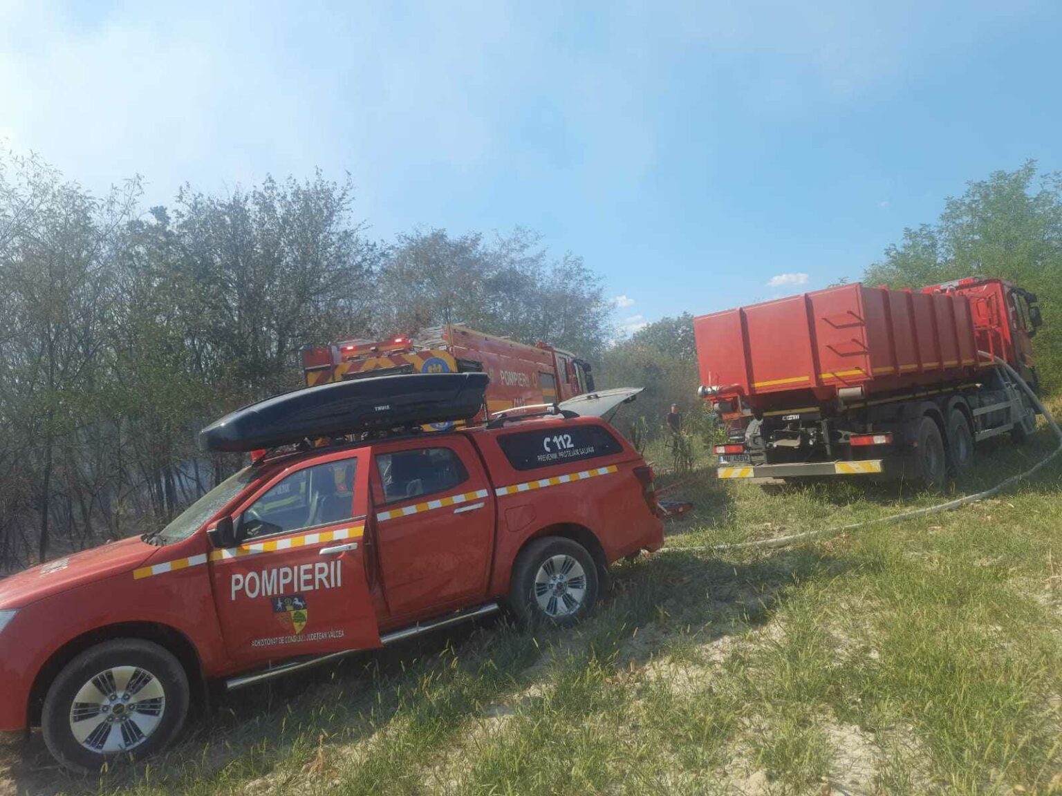 „Sunt afectate 3 case părăsite, în proporție de 70-80%, 6 anexe sunt arse în totalitate și cel puțin 20 de ha de vegetație uscată. Incendiul a intrat în fondul forestier. Doi colegi au acuzat stări de rău, din cauza efortului depus și a căldurii, au fost evaluați medical la fața locului, iar acum și-au revenit și continuă operațiunile de stingere”, au precizat pompierii vâlceni.