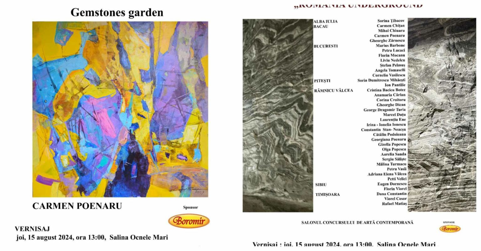 Joi, 15 august, Filiala Râmnicu Vâlcea a Uniunii Artiștilor Plastici din România, Salrom și Asociația Pro Valores, propun de la ora 13, două manifestări expoziționale inedite, care vor fi inaugurate în cadrul spațiilor expoziționale din Salina de la Ocnele Mari. În cadrul Salonului Concursului de Arte Vizuale „România Underground” vor putea fi admirate lucrările a 38 de artiști importanți, din Alba Iulia, Bacău, București, Pitești, Râmnicu Vâlcea, Sibiu și Timișoara.