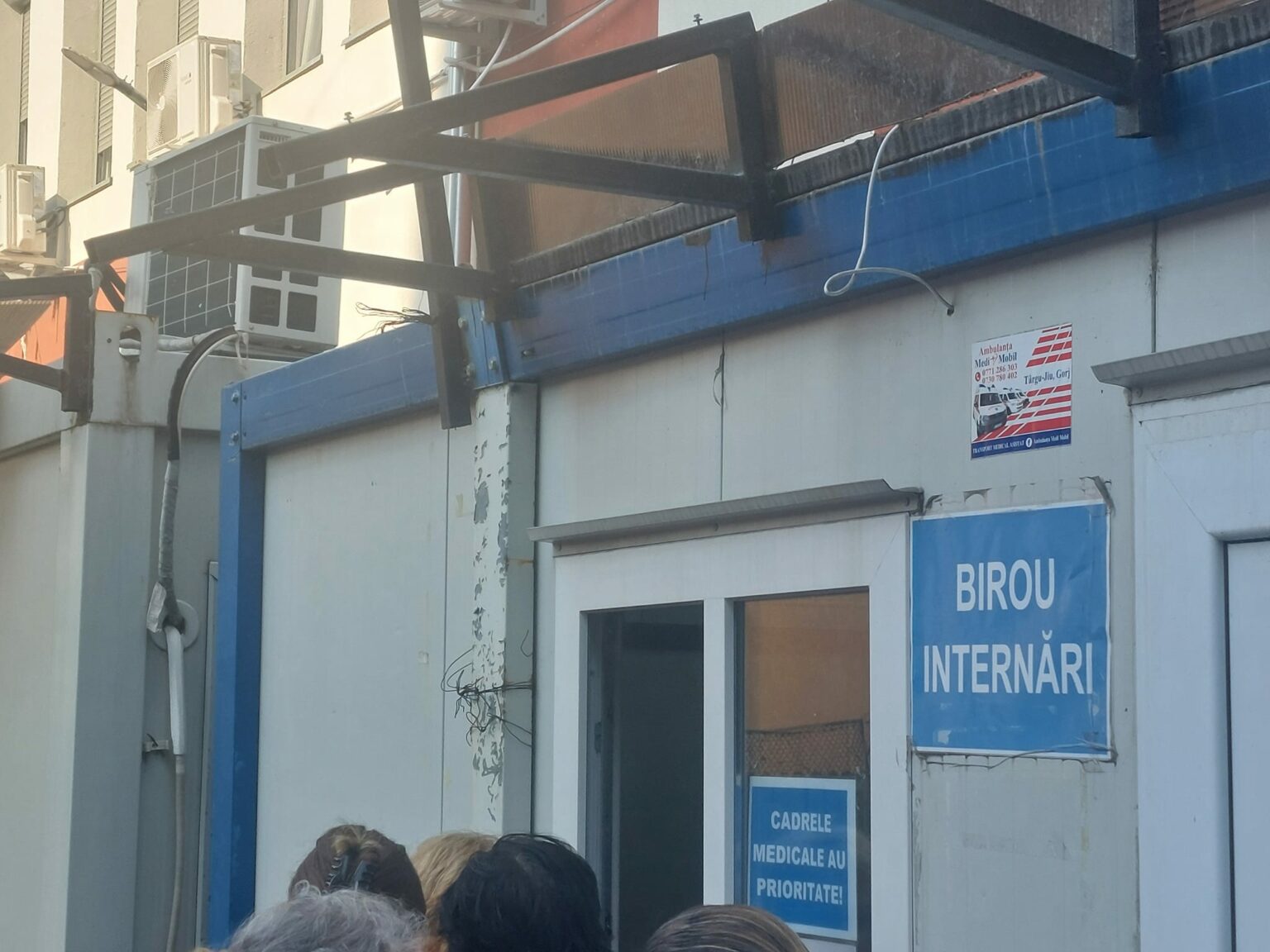 Pacienții care doresc să se interneze în secțiile medicale ale Spitalului Județean de Urgență (SJU) Tg-Jiu, situat pe strada Tudor Vladimirescu, trebuie să aștepte zeci de minute, în picioare, la Biroul de internări. De fapt, acest „birou de internări” este, în realitate, un container amplasat în curtea interioară a clădirii, unde un registrator medical se ocupă cu întocmirea documentelor de internare. După această așteptare, pacienții sunt direcționați către un alt container, unde se schimbă în ținuta de spital, conform Gorj Express.