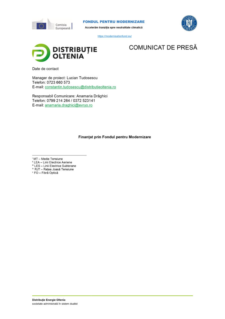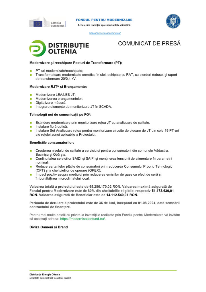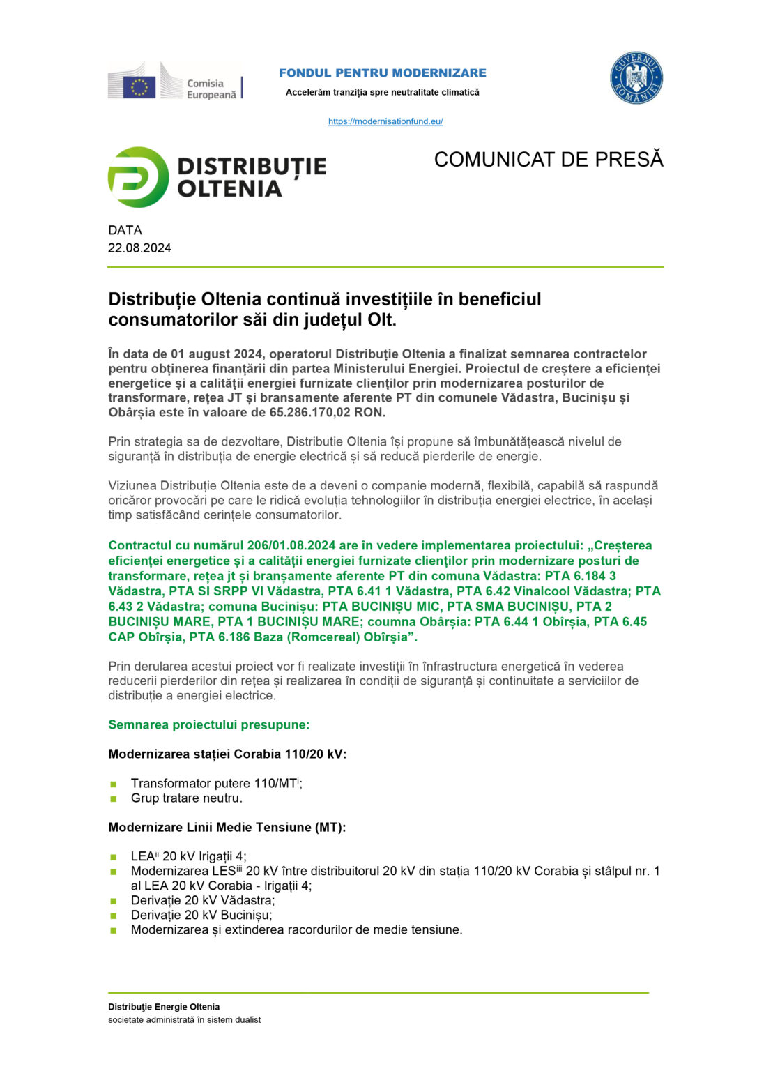 Distribuție Oltenia continuă investițiile în beneficiul consumatorilor săi din județul Olt