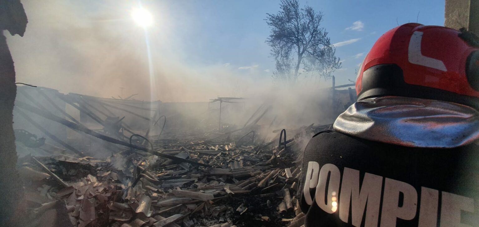 În urma incendiului au ars baloți de paie, cereale, iar clădirea a fost afectată în proporție de 80 la sută.