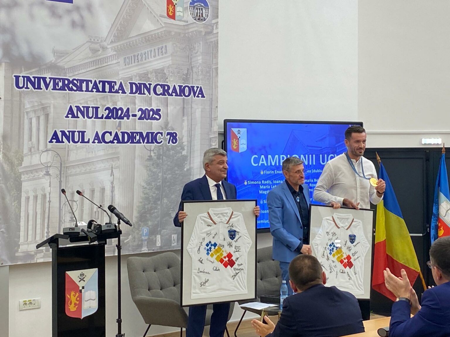 Florin Enache, campion olimpic la canotaj și absolvent al universității, a subliniat legătura puternică dintre performanțele sale sportive și sprijinul primit de la universitate. „Această medalie face parte din această Universitate. Toată lumea a contribuit la acest rezultat. Vă sunt profund recunoscător. Performanțele pe care le-am obținut de-a lungul anilor, atât în sport, cât și educațional au fost datorită anumitor persoane, în special cei din cadrul Facultății de Fizică și Sport din Craiova. Am găsit în spatele acestei universități, oameni profesioniști, oameni care m-au îndrumat și mi-au creat confortul necesar de a reuși să înglobez pas cu pas toate criteriile pe care a trebuit să mă bazez și să le urmez de-a lungul anilor. Această universitate este una cu potențial frumos. Cred cu tărie că schimbă mentalități”, a spus acesta în fața tuturor.