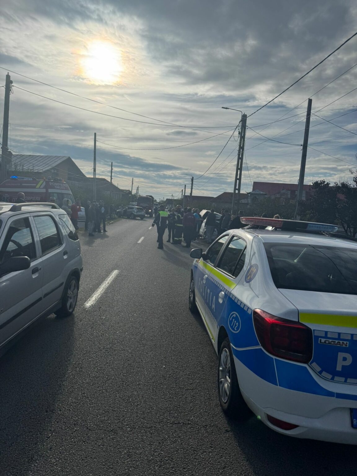 Accident uluitor în Gorj! O șoferiță care încerca să meargă înapoi cu mașina a intrat în coliziune cu un microbuz. Microbuzul a ricoșat într-un alt autoturism și a lovit și două persoane care se aflau pe marginea drumului, un medic ATI și soțul acesteia, care tocmai participaseră la o înmormântare.