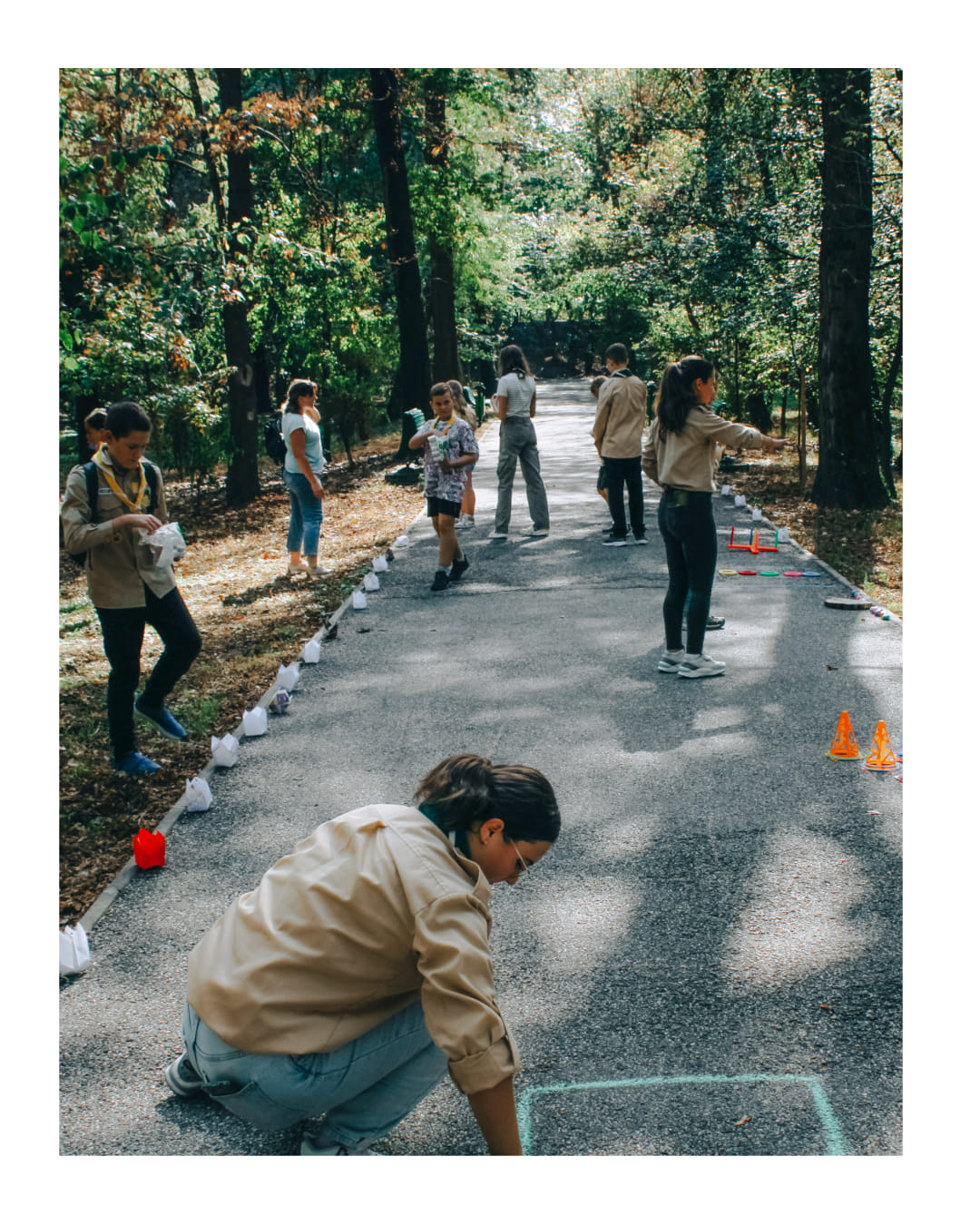 De la ora 14 și până la 19, vor fi organizate o serie de ateliere pentru copii și adulți: „Jocurile copilăriei“, „Atelier de gulguţe“ (pahare din hârtie reciclabilă), „Jocul cu mere“ , „Cercetaș pentru o zi“, „Brățări cercetășești“, „Atelier de împletituri“, „Origamii“, „Tir cu arcul“, ,,Tir cu pistolul airsoft”, „Jocuri cercetășești“, „Gânduri bune în borcan“, „Pictură pe față“, etc.