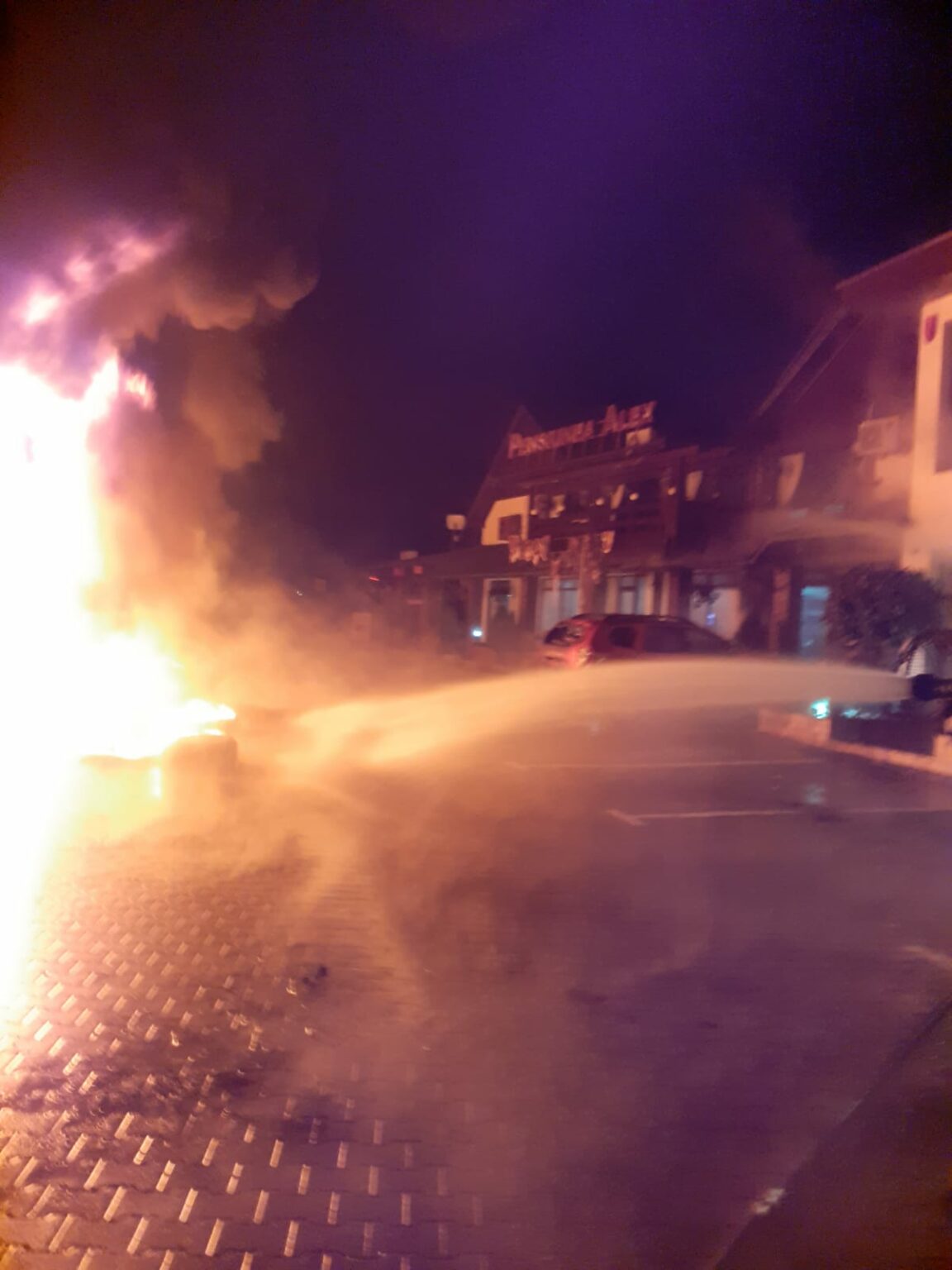 „In cursul diminetii de 22.10.2024 au ars remorca unui autotren si incarcatura – 912 anvelope auto. S-au degradat din cauza caldurii elemntele de fatada si mobilier terasa pensiune Alex, elemente din plastic caroserie la doua autoturisme si o autoutilitara, s-a spart geam termopan de la parter si et.1 al pensiunii. Cauza probabila scurt circuit electric. S-au autoevacuat 10 persoane care erau cazate in pensiune, nu au necesitat ingrijiri medicale”, potrivit ISU Vâlcea.