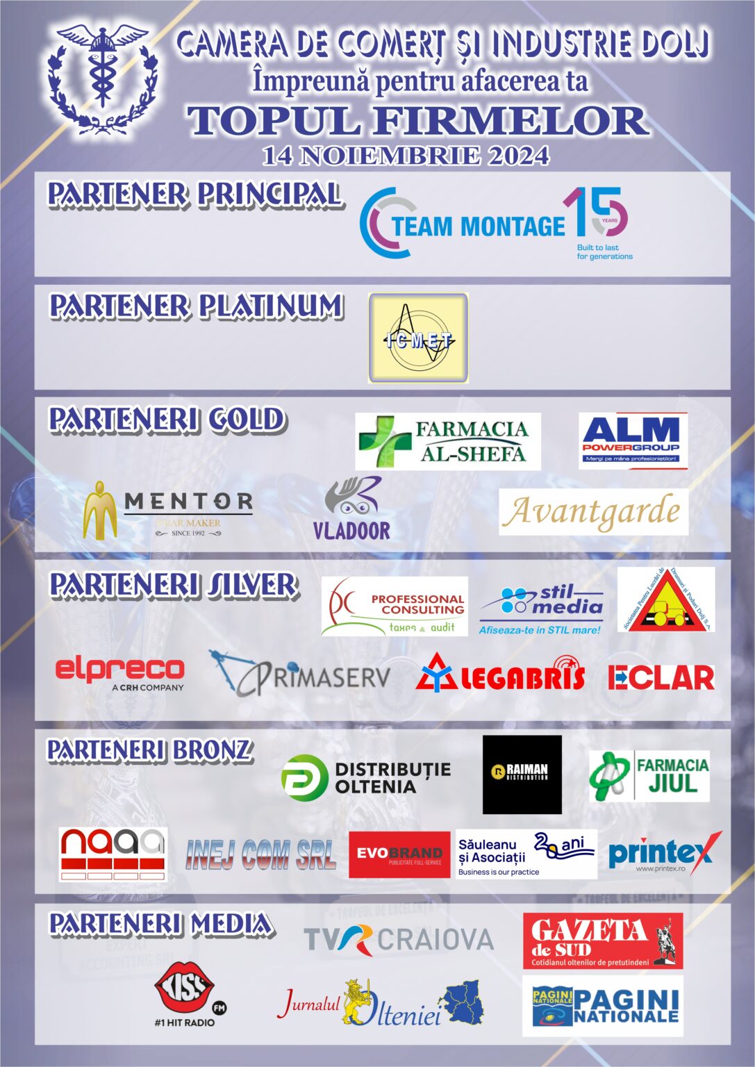 Topul firmelor din acest an este o recunoaştere publică a celor mai performante companii din judeţul Dolj. Clasamentul a fost realizat pe baza unei metodologii unice la nivel naţional, ţinând cont de situaţia financiară din anul 2023.